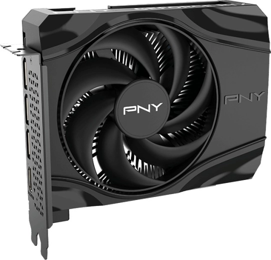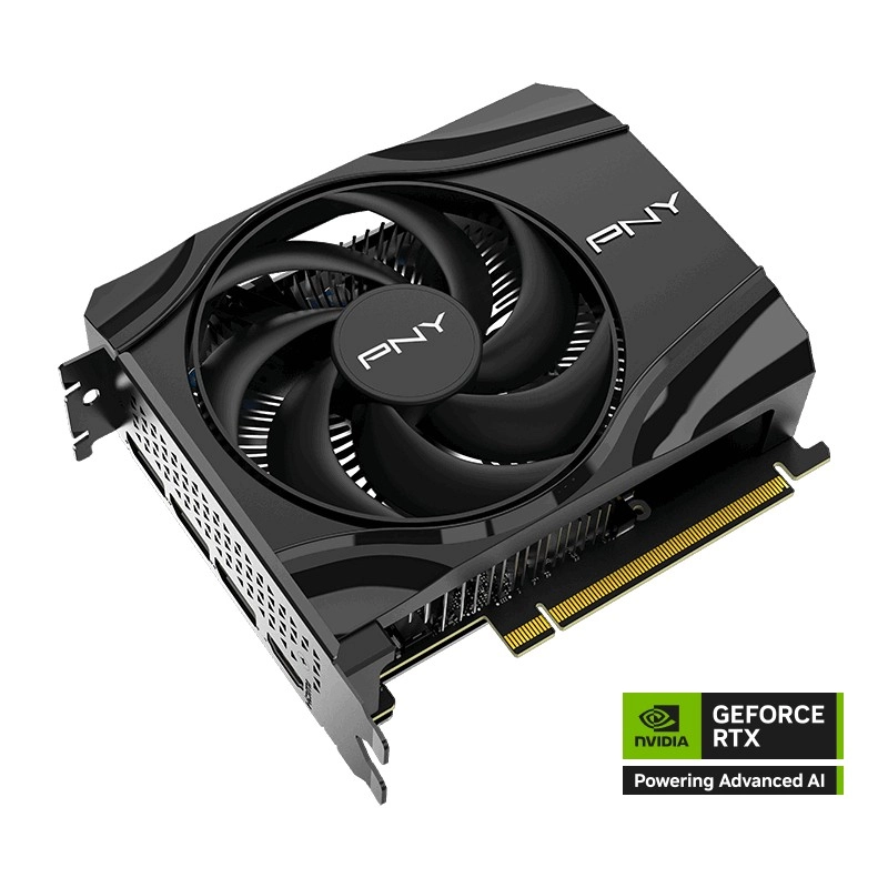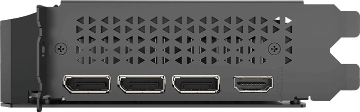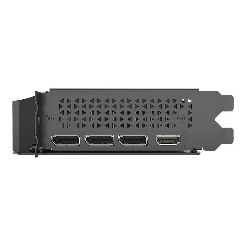 Det korte ét- til to-slot design med én stor aksial ventilator og en robust metal-backplate øger kortets stivhed og bidrager til bedre varmeafledning. På bagpanelet finder du HDMI og tre DisplayPort til multiskærmsopsætninger og flydende multitasking.