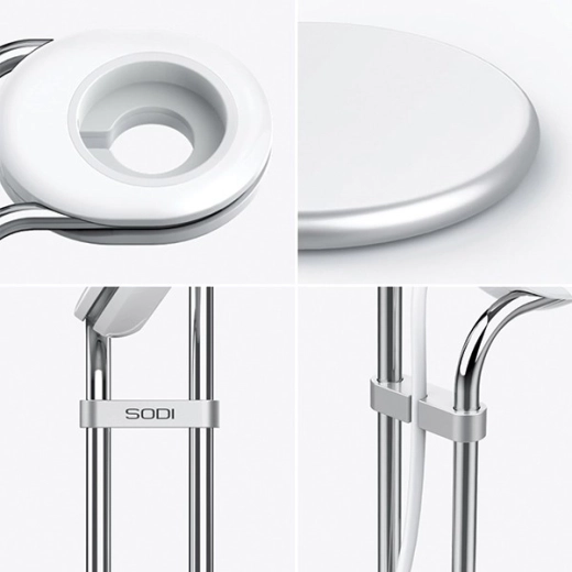 Den gennemtænkte højde og armgeometri fastholder opladeren sikkert, mens skridsikker silikone beskytter møbelflader mod ridser. Det minimalistiske, futuristiske look matcher både laptop og andet udstyr og gør standeren til et elegant interiørtilbehør.