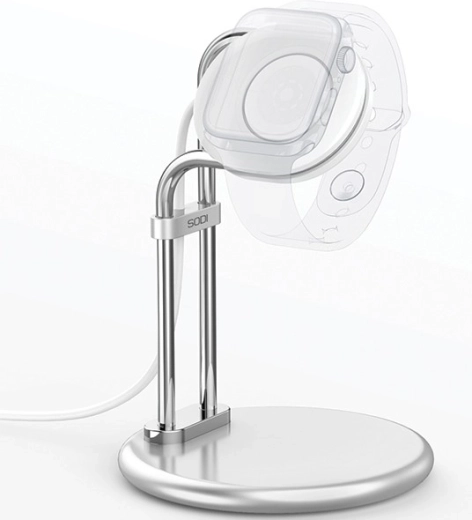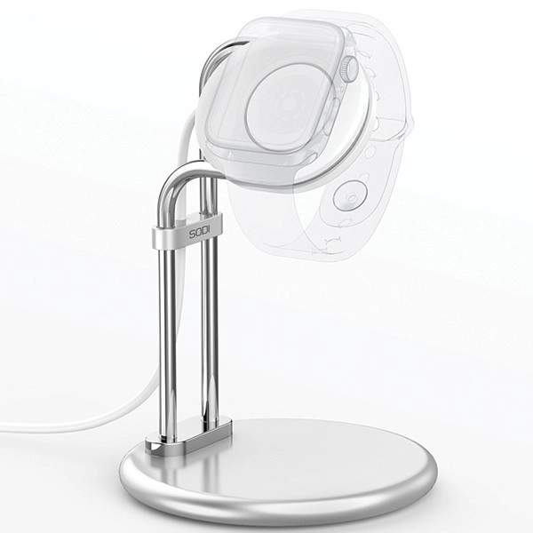 Standeren placerer Apple Watch i den ideelle position til at læse tid, notifikationer og natbordstilstand – uden unødvendig hovedvippen.