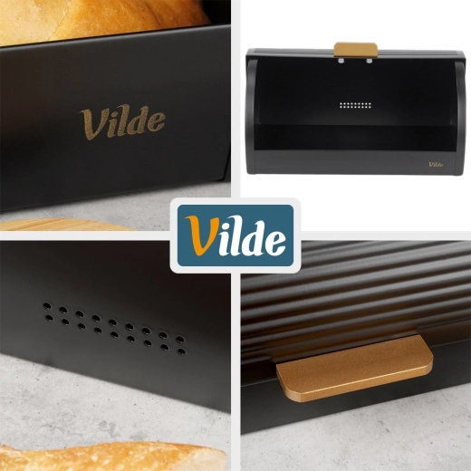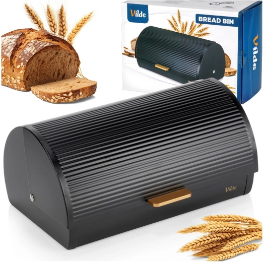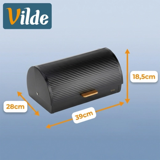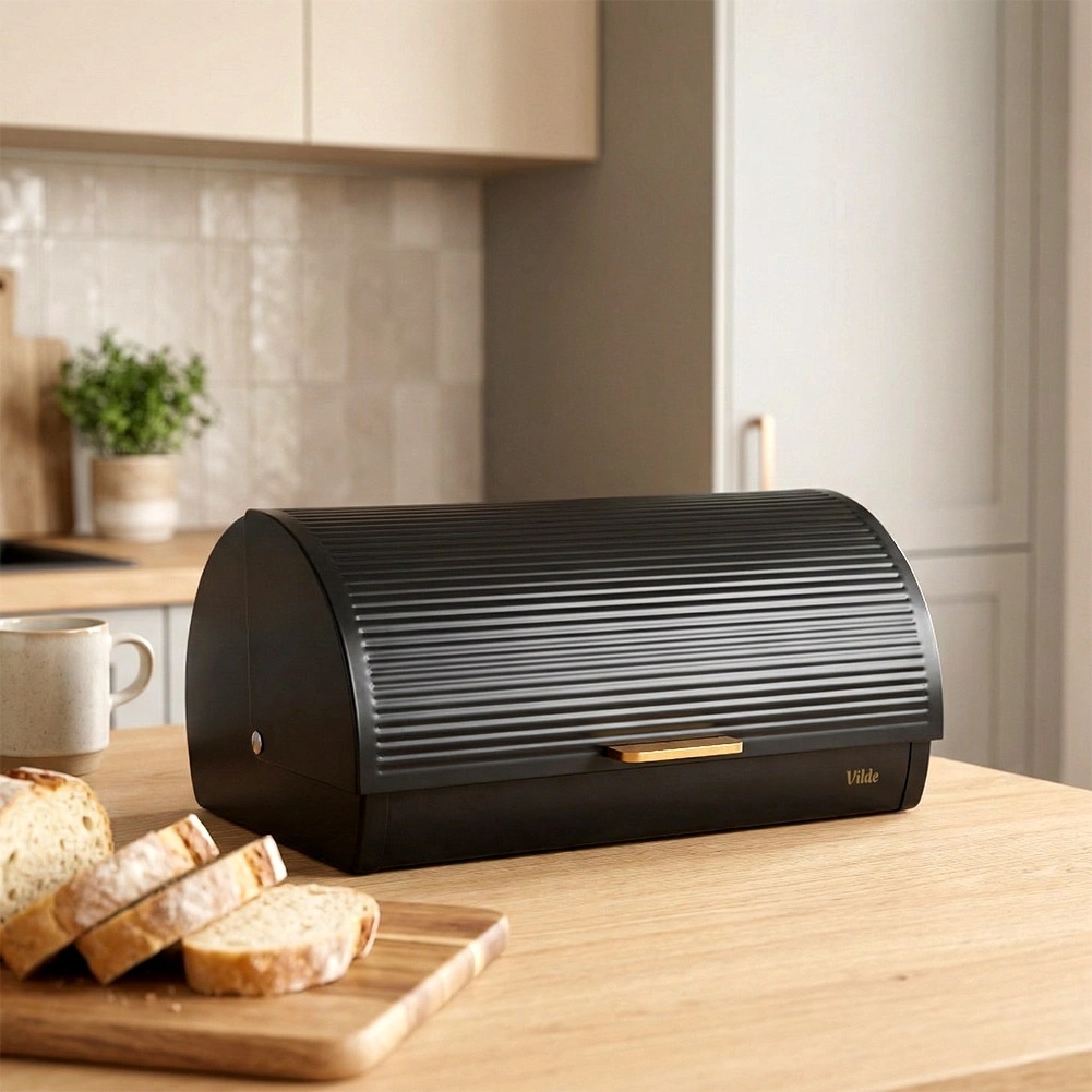 En praktisk og rummelig brødboks med målene 39 × 28 × 18,5 cm giver et sikkert sted til brød, rundstykker og sødt bagværk. Den robuste metalkonstruktion med pulverlak i mat sort modstår skader og hjælper med at bevare de ideelle opbevaringsforhold.
