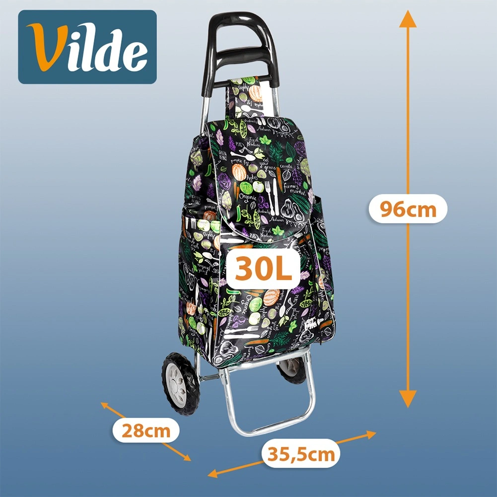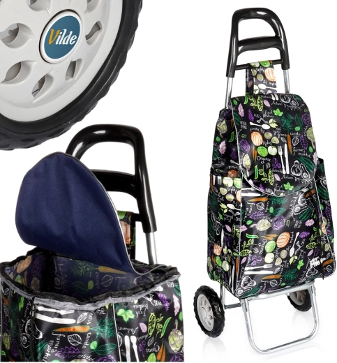 Vognen er designet til daglig brug med en bæreevne på op til 20 kg. Vognens samlede mål er 35,5 × 28 × 96 cm, og taskens mål er 34 × 17 × 56 cm, så der er rigelig plads til både mindre og større indkøb.