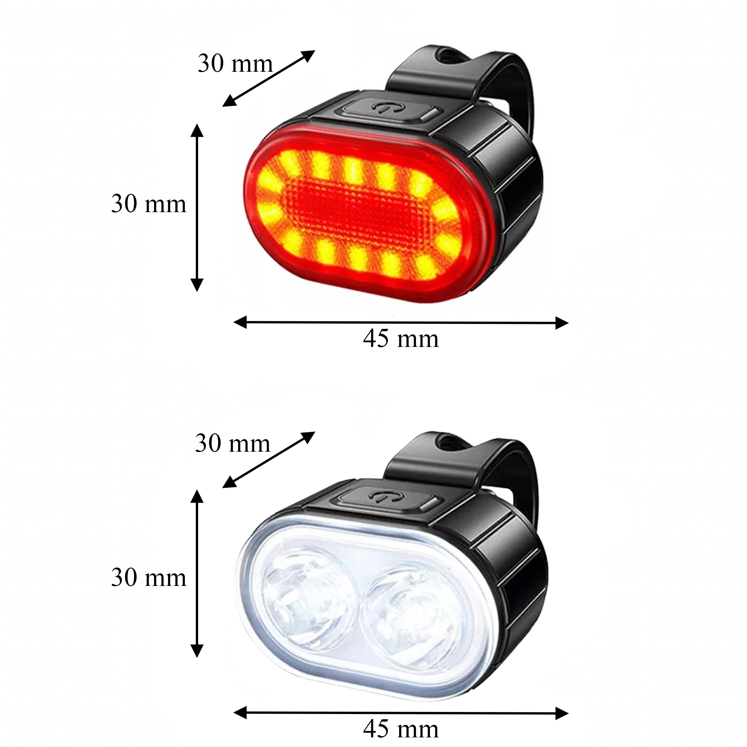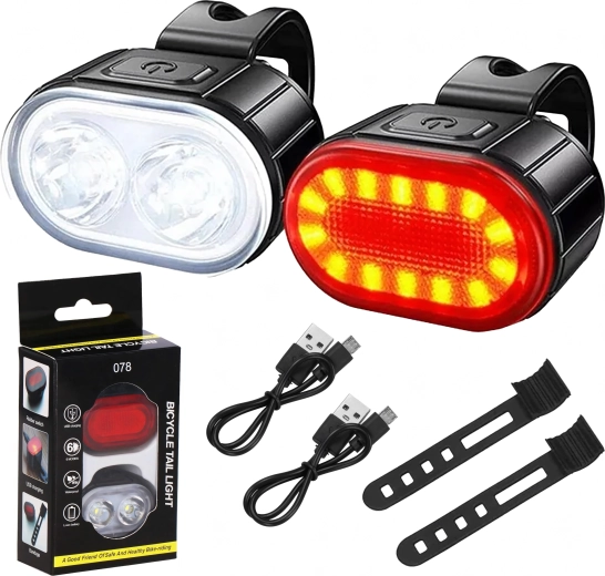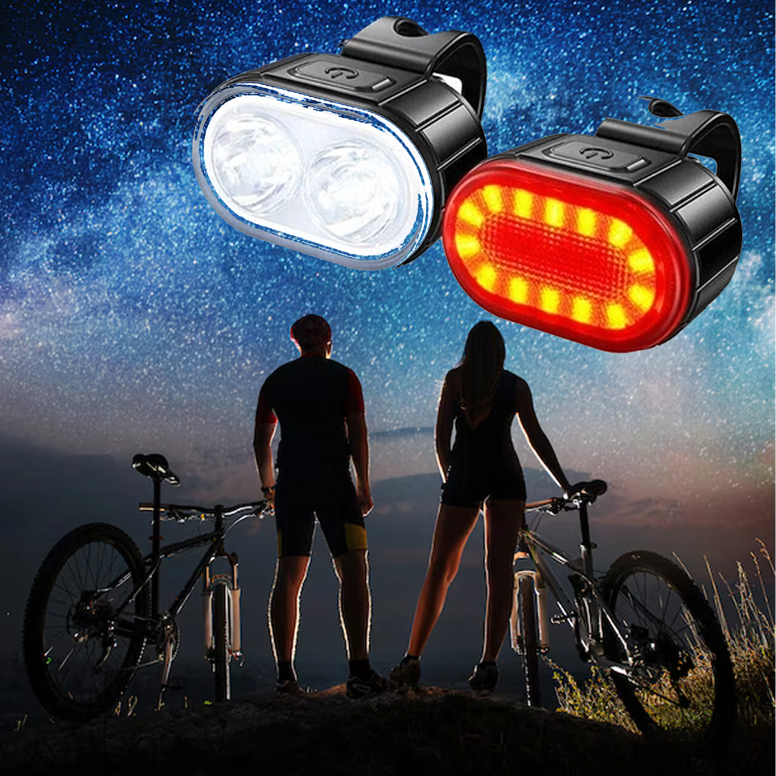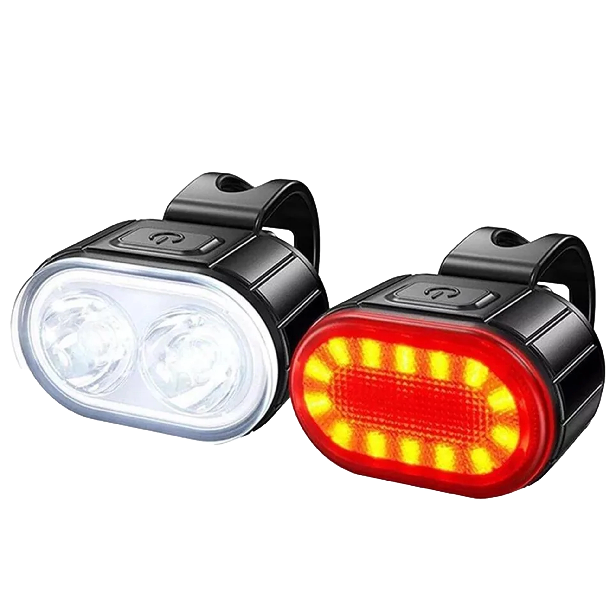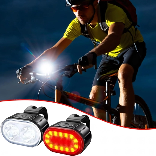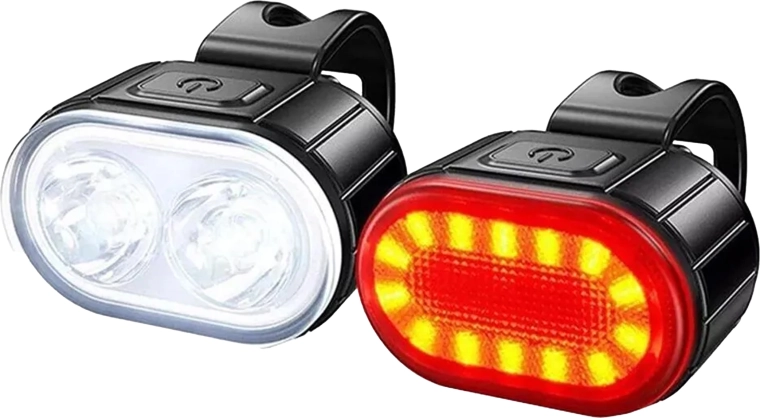Øg din sikkerhed ved kørsel i mørke med et kompakt sæt cykellygter – hvid forlygte og rød baglygte. Begge lamper byder på kraftige LED'er, nem montering på styr eller sadelpind, USB-opladning og vandtæt design for pålidelig belysning i al slags vejr.