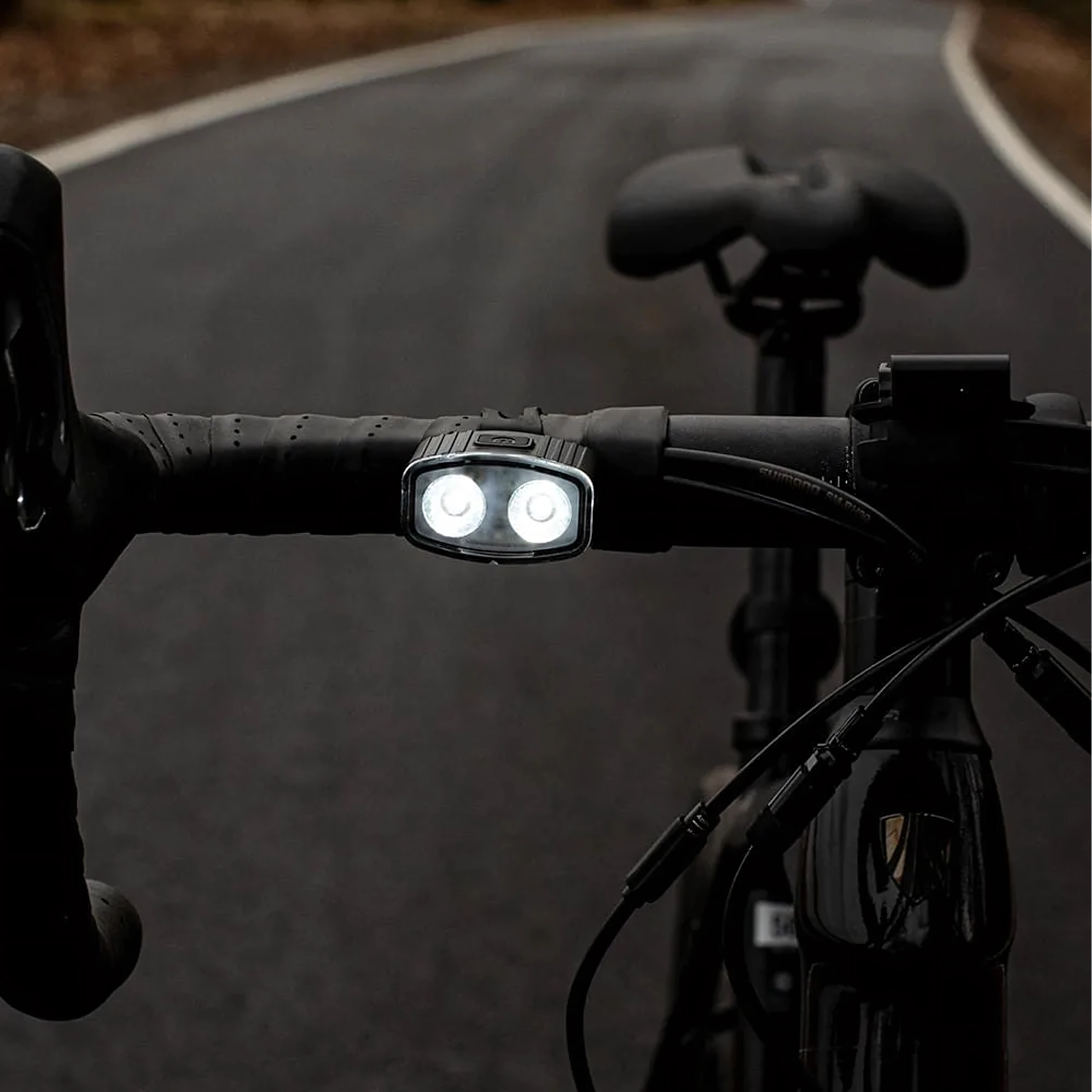 Den kompakte forlygte med to LED'er oplyser effektivt vejen, forbedrer reaktionstiden og øger din sikkerhed på morgen- og aftenture.