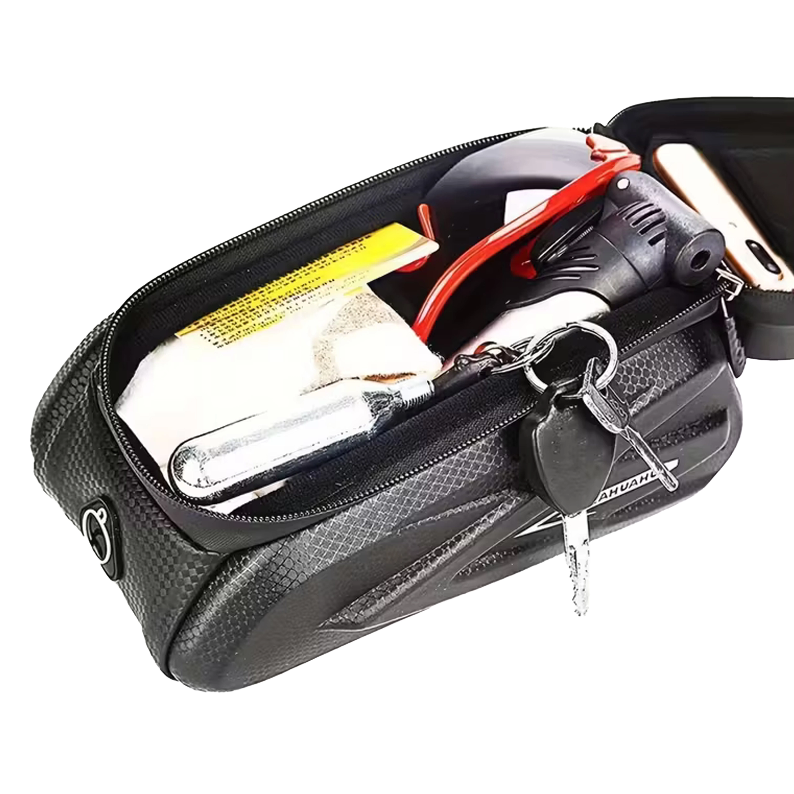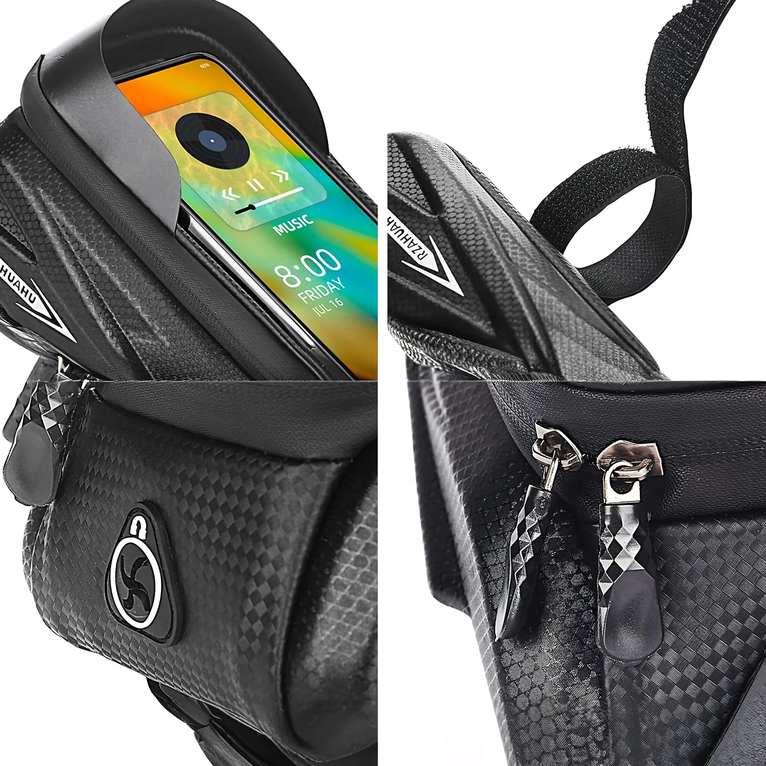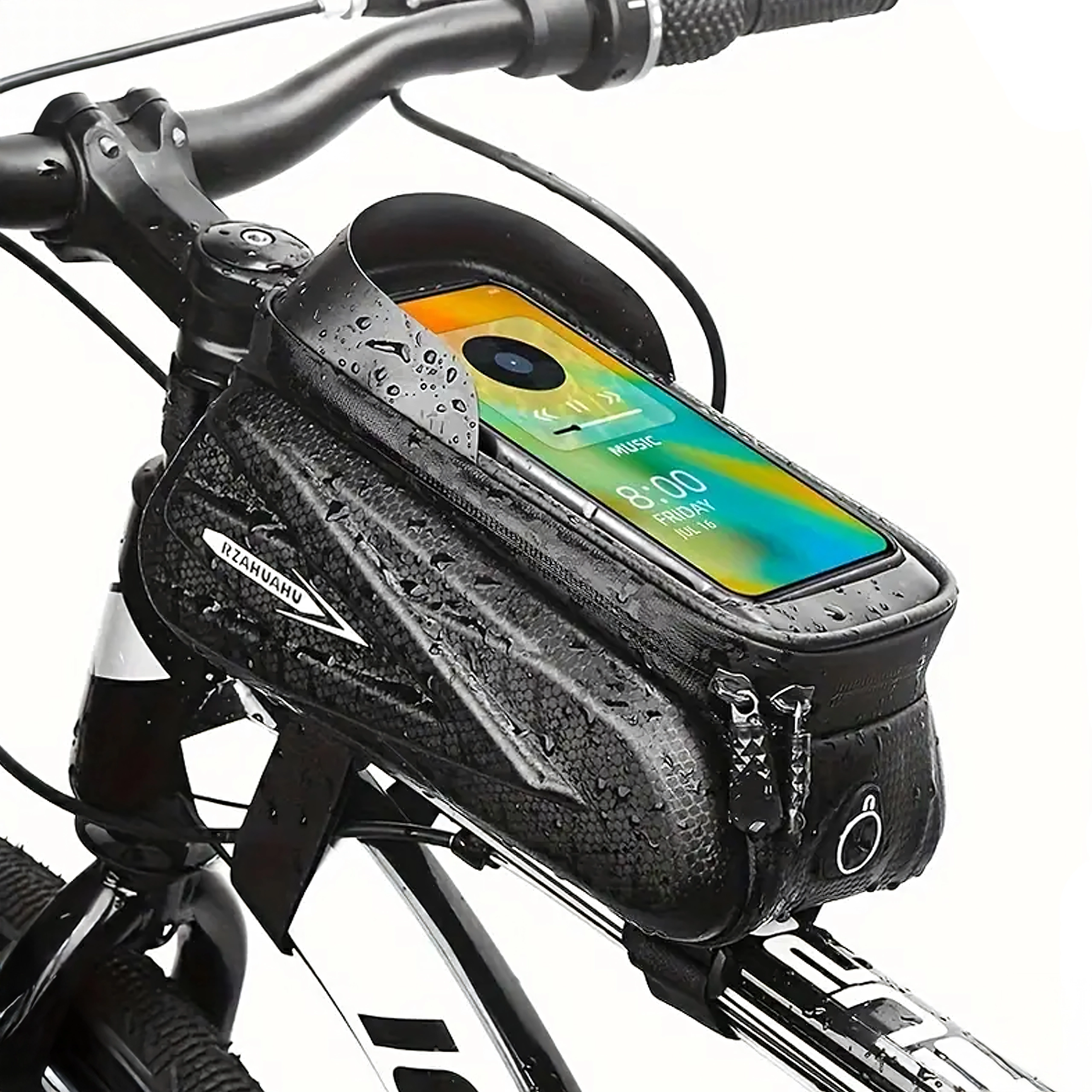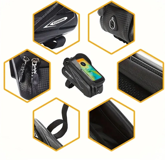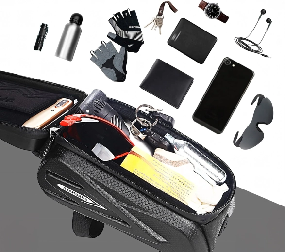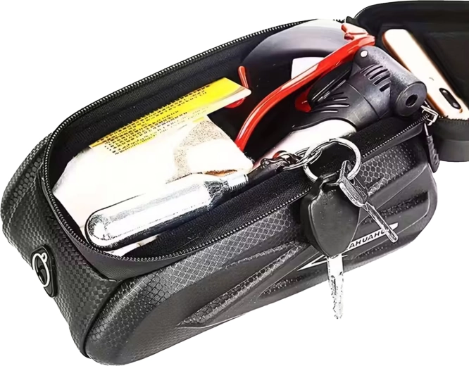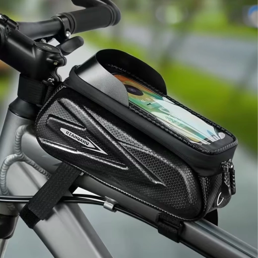 Denne elegante, vandtætte taske til den øverste rammestang kombinerer opbevaringsplads til småting med et gennemsigtigt etui til din telefon. Touch-folien gør det nemt at betjene navigation, modtage opkald eller styre afspilning uden at tage mobilen ud. Den hårde skalkonstruktion og tætnede lynlåse beskytter indholdet mod stænk og støv.