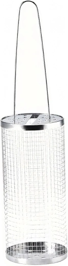 - Cylindrisk kurv med perforerede ender og langt trådhåndtag