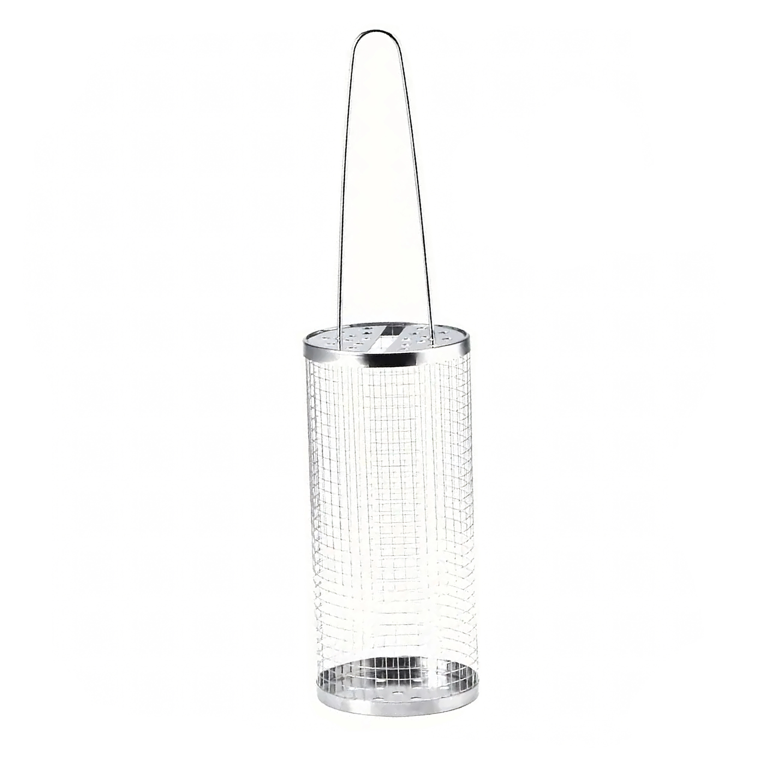 Den cylindriske kurv i rustfrit stålnet er ideel til at grille små råvarer, som ellers ville falde gennem risten. De fine perforeringer slipper varme og røg igennem, så du opnår en sprød overflade og en saftig midte uden rod på grillen. Den roterende udformning gør det let at tilberede jævnt uden at vende hvert enkelt stykke.
