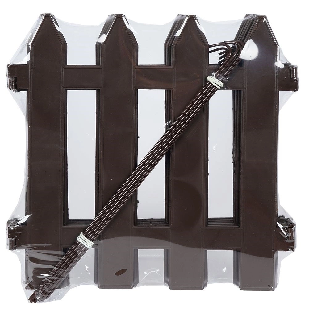 Dekorativ brun havekant på 30 × 30 cm i et sæt med 10 stk., der skaber en elegant kant om bede og græsplæner. Den er nem at installere, vejrbestandig, modulær og udvidbar, og takket være den robuste plastkonstruktion med metalspyd holder den i mange år. Samlet længde efter montering er 300 cm – ideel til hurtig og æstetisk afgrænsning af områder i haven.