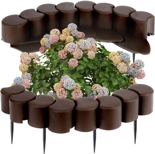 Skab rene og stilfulde kanter omkring græsplæner, bede og stier. Denne brune plastpalisade kombinerer et attraktivt udseende med høj praktisk anvendelighed – modulerne klikkes let sammen, så du hurtigt kan lave både lige linjer og bløde kurver efter havens behov. Takket være det holdbare materiale forbliver den farveægte og funktionel hele året.