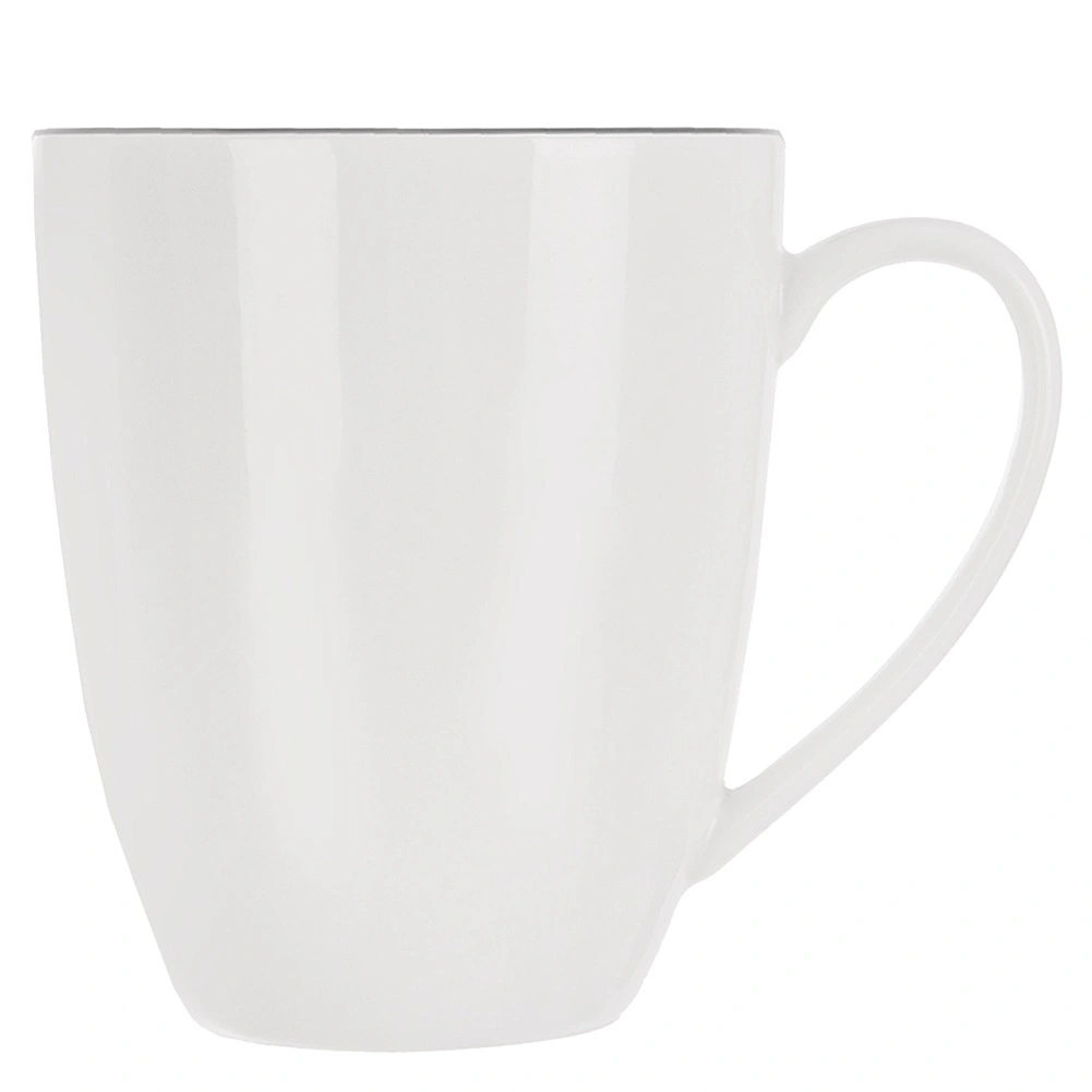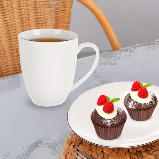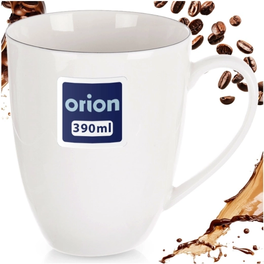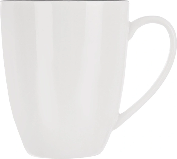 Elegant hvid porcelænsmok DECORA med en kapacitet på 390 ml er ideel til kaffe, te og kakao. Den har et klassisk design med en tynd sort linje, et behageligt hank og er egnet til opvaskemaskine og mikroovn – perfekt til daglig brug derhjemme og på kontoret.