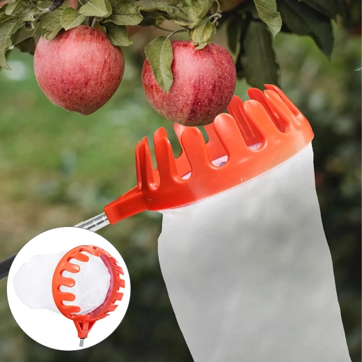 Monteres på en teleskopstang (med gevind), så du nemt når trækronerne uden at bruge stige. Tilbehøret har let konstruktion, er nemt at håndtere og egner sig til mange frugttyper – fra æbler og pærer til citrus og avokado. Ideel til haver, plantager og hjemmehøst.
