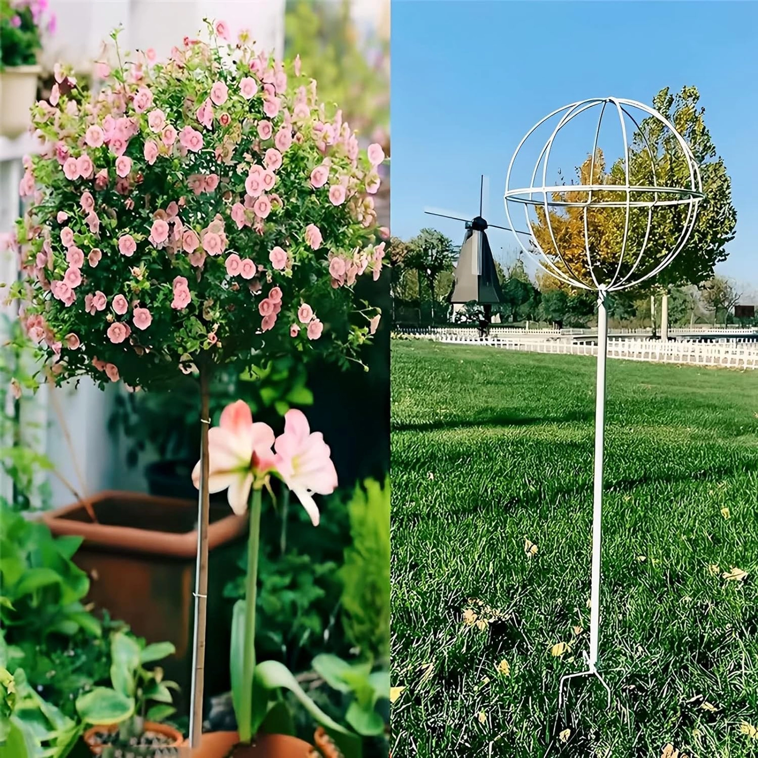 Støtten hjælper med at forhindre nedlægning af stængler, fremmer rig blomstring og lader planterne vokse i en attraktiv kugleform. Velegnet til bede, krukker og altankasser og komplementerer både moderne og klassiske havekompositioner.