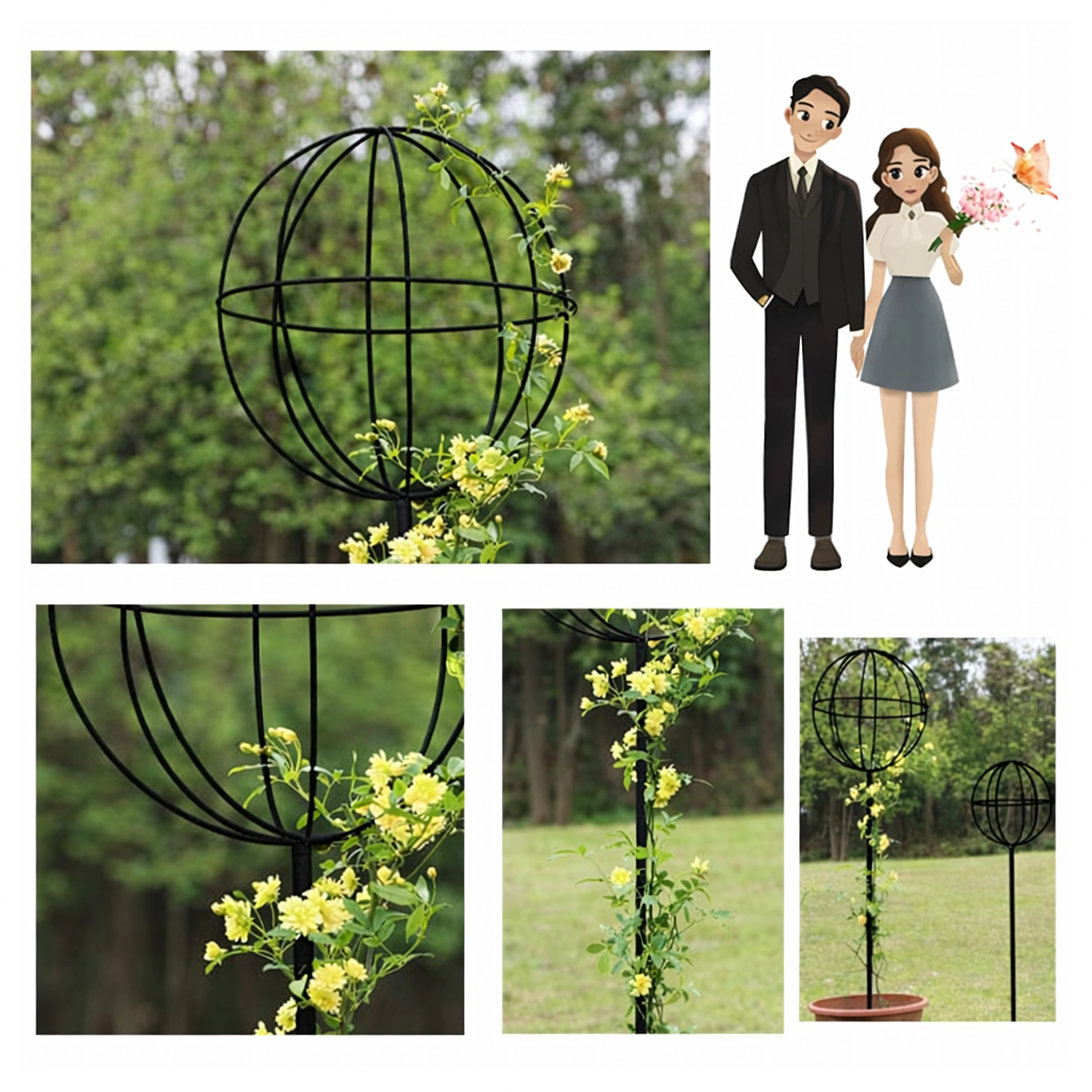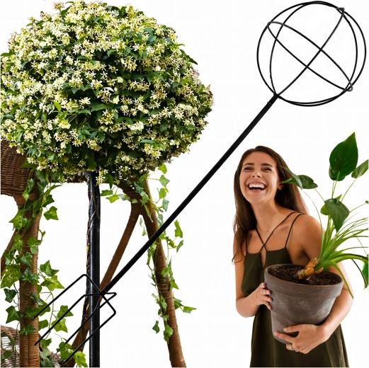 Elegant metallisk støtte til klatreplanter hjælper med at lede og forme roser, klematis og andre slyngende blomster. Takket være det slanke design på 50 × 10 cm er den ideel til både bede og krukker, og den sorte overflade virker diskret og dekorativ. Giver stabil støtte, holder planterne oprette og sikrer sund vækst uden at lægge sig ned.