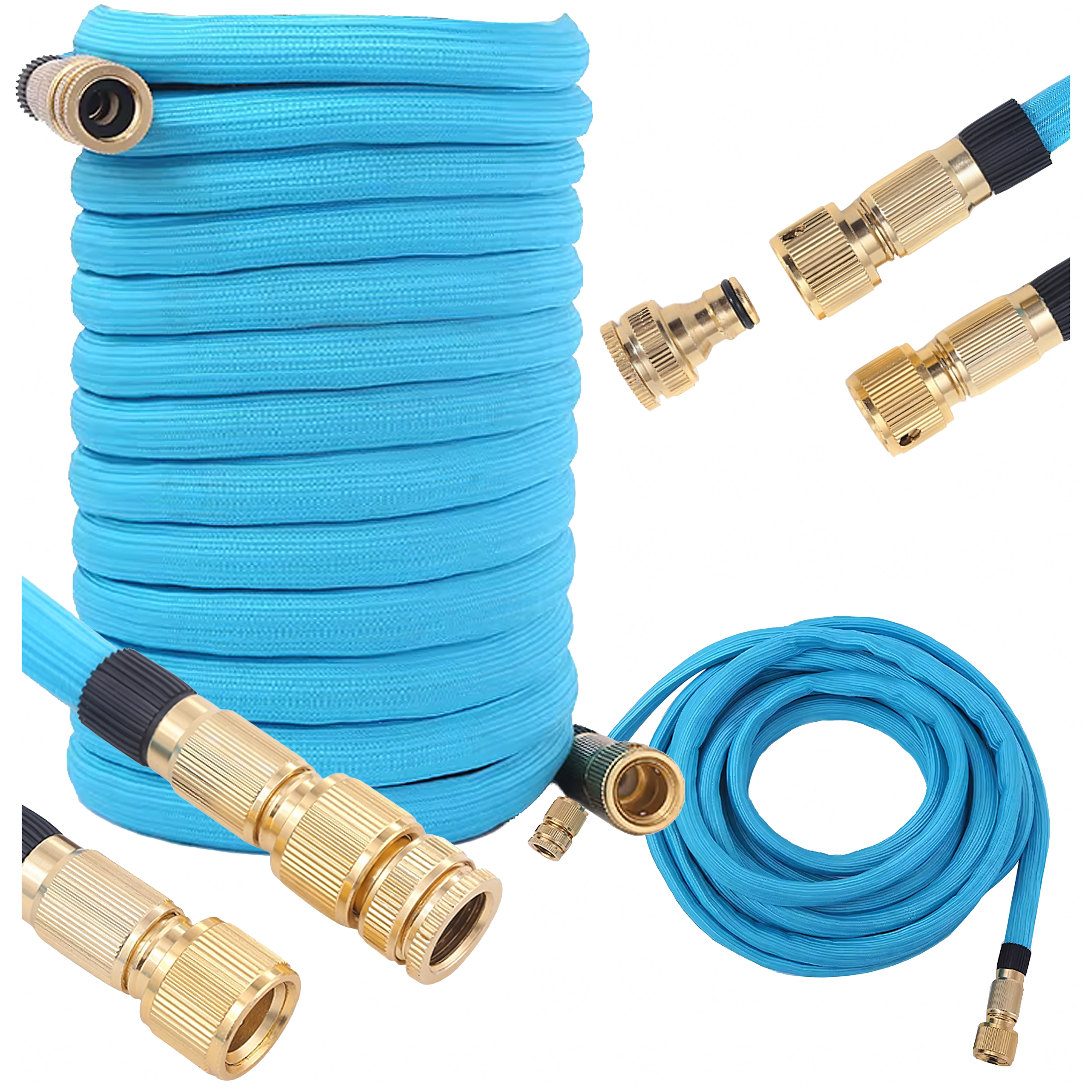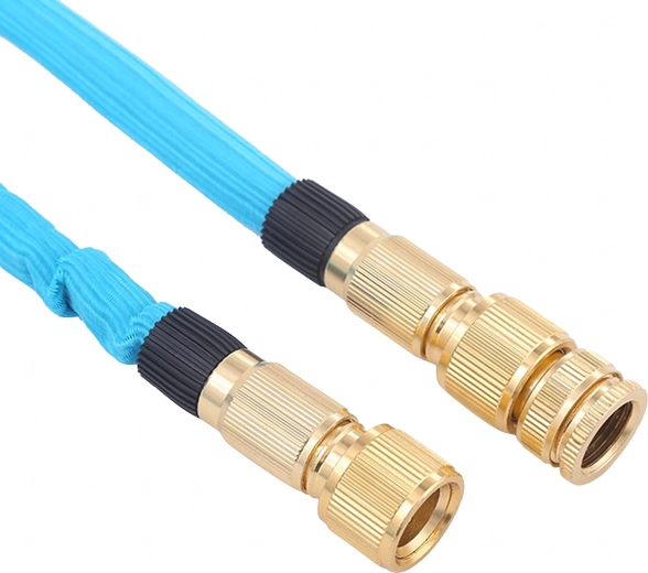 Denne udvidelige slange er designet til maksimal bekvemmelighed: ved opfyldning forlænger den sig automatisk op til tredobbelt længde og trækker sig kompakt sammen efter tømning for nem opbevaring. Det holdbare tekstilflet beskytter den indre kerne, mindsker risikoen for knæk og forlænger levetiden. Messingender med pakning sikrer en fast, drypfri forbindelse til haner og sprøjter.