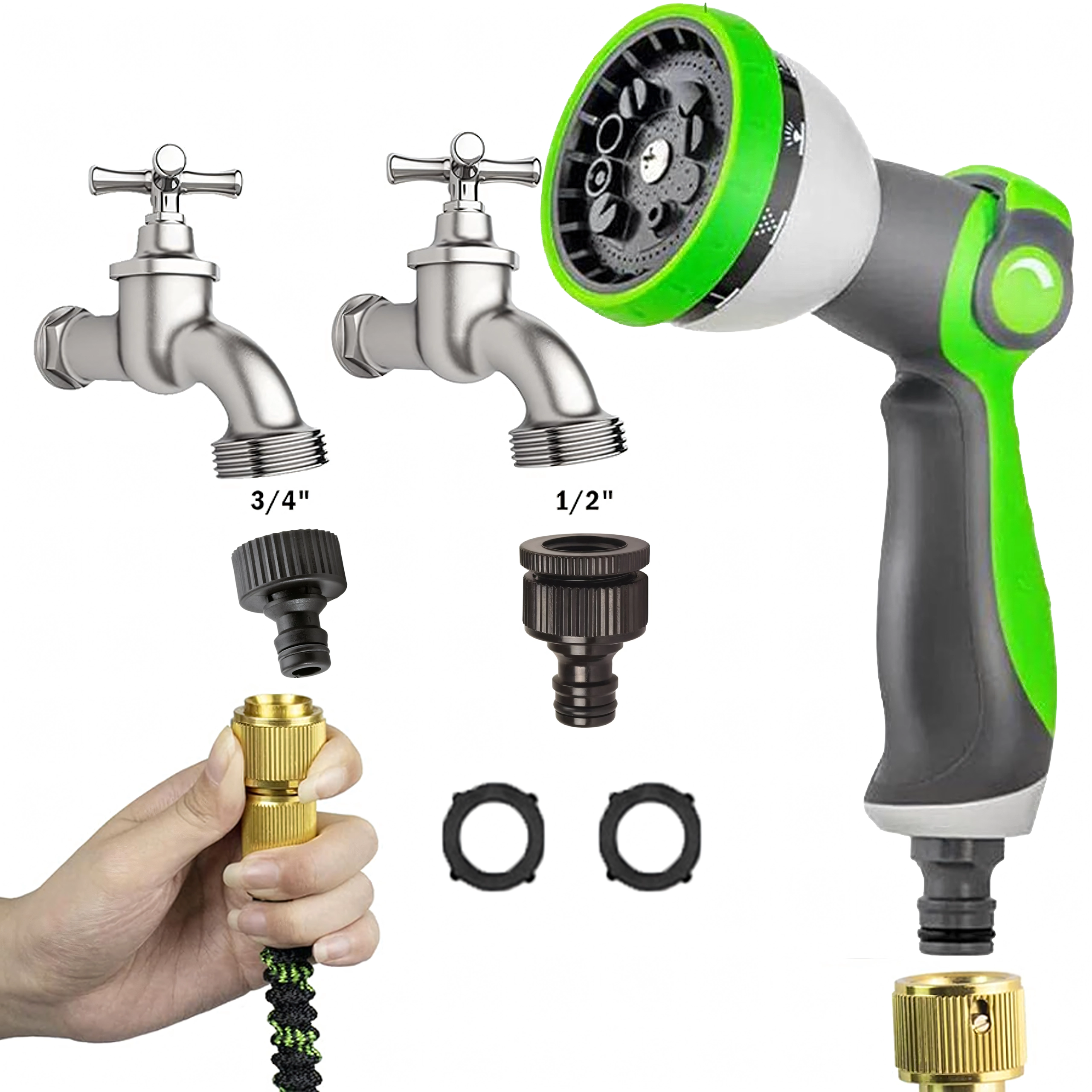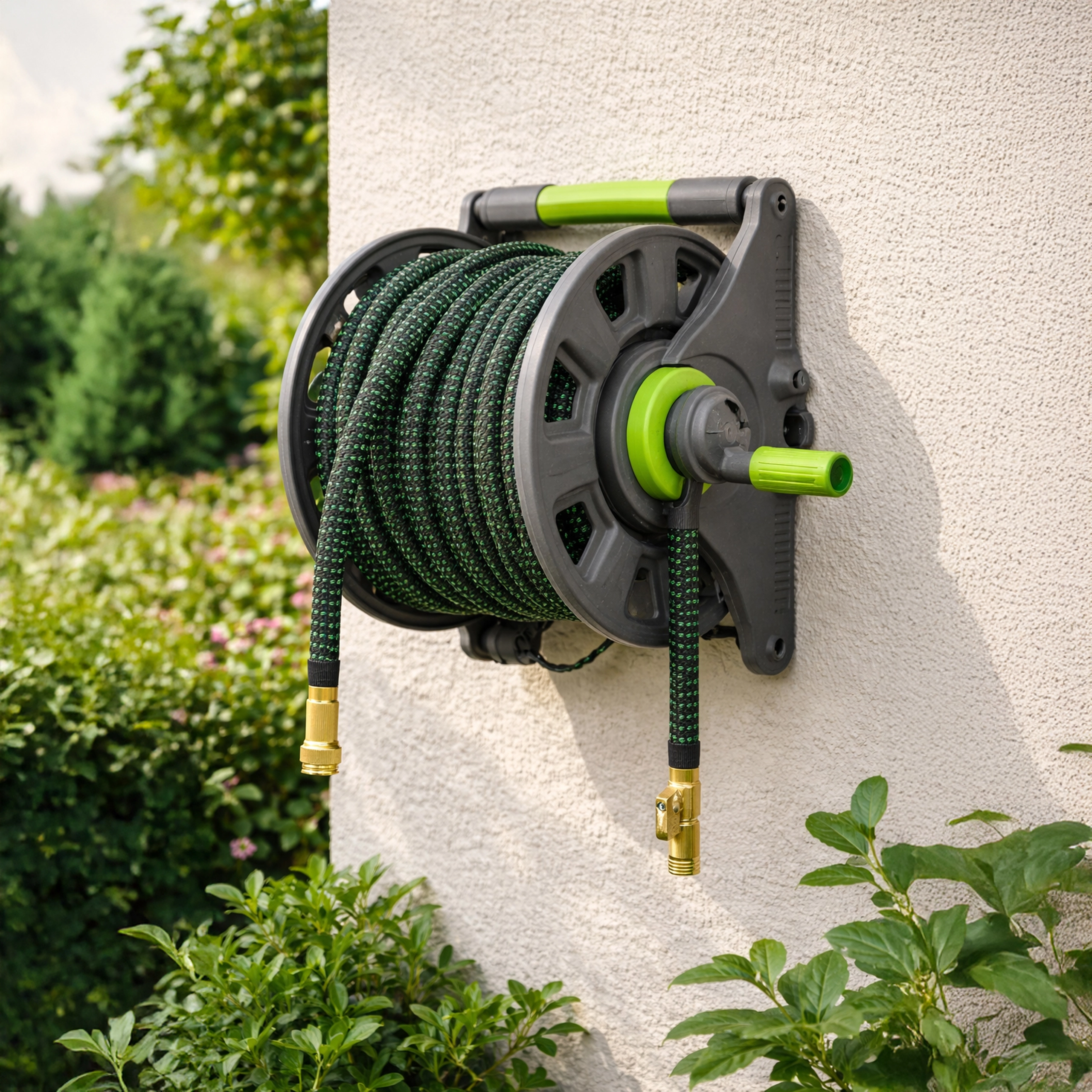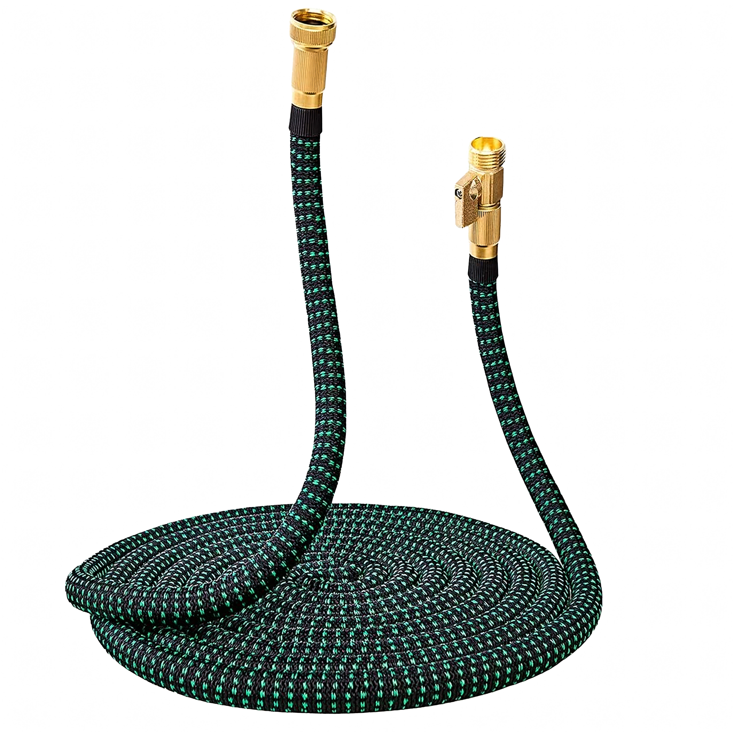 Denne udvidelige slange forlænger sig op til 7,5 m ved vandpåfyldning og trækker sig kompakt sammen igen ved tømning for nem opbevaring. Det tekstile flet kombineret med messing-hurtigkoblinger sikrer holdbarhed, tæthed og lang levetid. Den ergonomiske sprøjtepistol tilbyder flere indstillinger fra fin tåge til kraftig stråle.