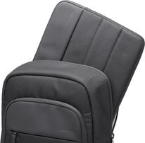 Materialet indeholder genanvendt polyester fra post-consumer affald, hvilket hjælper med at reducere det økologiske fodaftryk, mens den gennemtænkte inddeling gør organiseringen nem: et polstret rum rummer sikkert din bærbar, forlommen med lynlås holder kabler og tilbehør lige ved hånden, og to sidelommer er klar til vandflaske eller paraply.