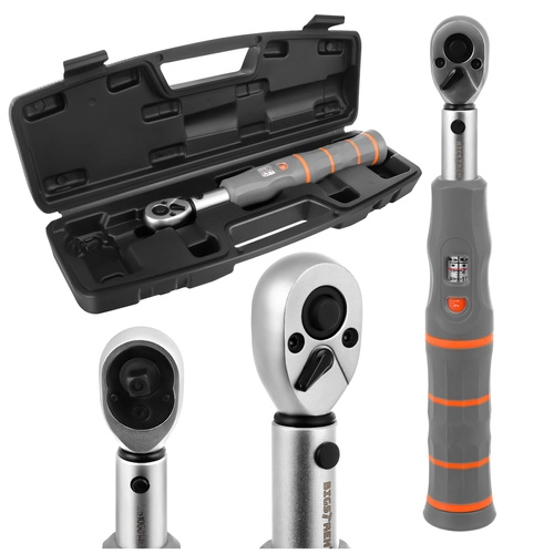 Kompakt momentnøgle BIGSTREN 1/4" med område 2–26 Nm til præcis tilspænding i cykling, auto-moto og værksted. Leverer ±0,5 % nøjagtighed, skraldehoved, højre/venstre-omskifter og låst indstilling for sikkerhed og gentagelige resultater. Robust konstruktion af chromlegering og Cr–Mo stål samt ergonomisk TPR-greb sikrer lang levetid og komfortabelt arbejde.