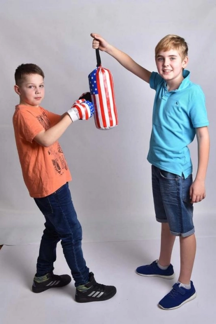 Handskerne har en størrelse, der passer perfekt til små børnehænder. Puden og handskerne med motiver af det amerikanske flag vil underholde enhver lille fighter. Legetøjet er lavet af blødt materiale, så du behøver ikke frygte eventuelle skader. Det udvikler børns dygtighed samt fantasi og fremmer sund bevægelse hos barnet.