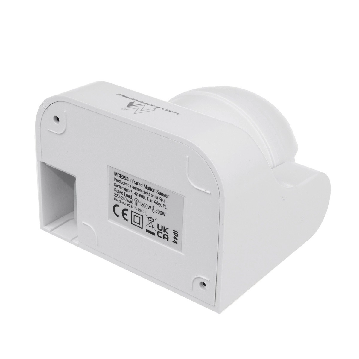 Pålidelig vægmonteret PIR bevægelsessensor MACLEAN MCE358 med IP44-beskyttelse tænder automatisk lys eller aktiverer enheder ved registrering af bevægelse. Den tilbyder rækkevidde op til 12 m, registreringsvinkel på 180°, indstilling af tidsforsinkelse og lysfølsomhed (LUX). Ideel til haver, indgange, gange, garager og lagre.