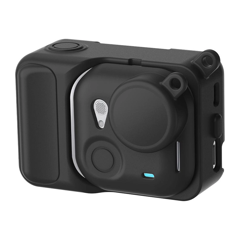 Konstruktionen er designet efter den faktiske model, så montering er hurtig og sikker. Udskæringer til mikrofoner, højttalere, USB‑port og blitz gør det muligt at udnytte alle funktioner fuldt ud. De forhøjede knapområder gør det lettere at orientere sig taktilt, mens den ikke‑dækkede Action Pod‑skærm sikrer problemfri betjening og forhåndsvisning.