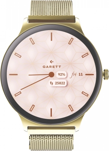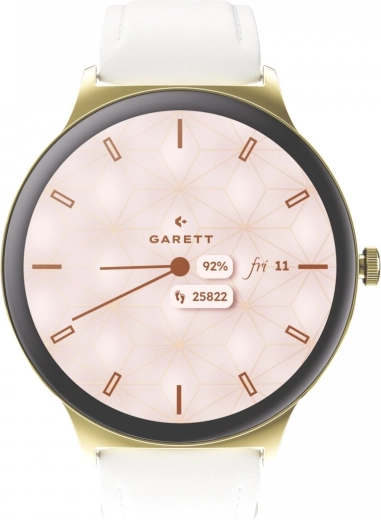 Til en aktiv livsstil tilbyder uret mere end 100 sportsindstillinger, indbygget skridttæller og detaljeret præstationsanalyse i appen Garett Smart. Sundhedsfunktioner omfatter måling af puls, blodtryk, SpO₂, overvågning af stress og søvn, vejrtrækningsøvelser samt menstruationskalender. Batteriet holder op til 7 dage på en enkelt opladning, med mulighed for strømbesparende tilstand for endnu længere drift.