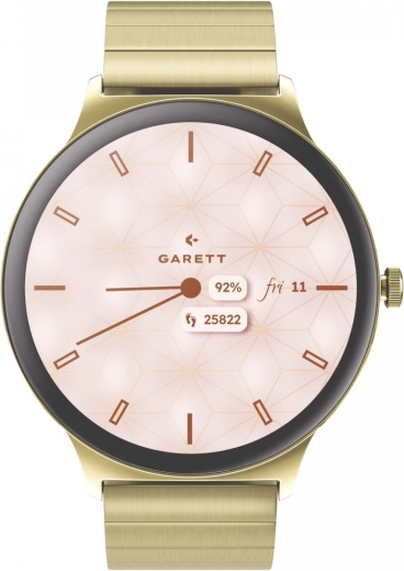 Elegante smartwatch Garett Verona 2 forener tidløst design og moderne teknologi. I æsken finder du både en guldfarvet stålrem og en hvid læderrem, så du nemt kan tilpasse stilen. Uret byder på AMOLED 1,43" (466 × 466) med Always On Display, robust Gorilla Glass, Bluetooth-opkald og stemmeassistent. Over 100 sportsindstillinger, avancerede sundhedsmålinger og batteritid på op til 7 dage gør Verona 2 til den perfekte ledsager i hverdagen.