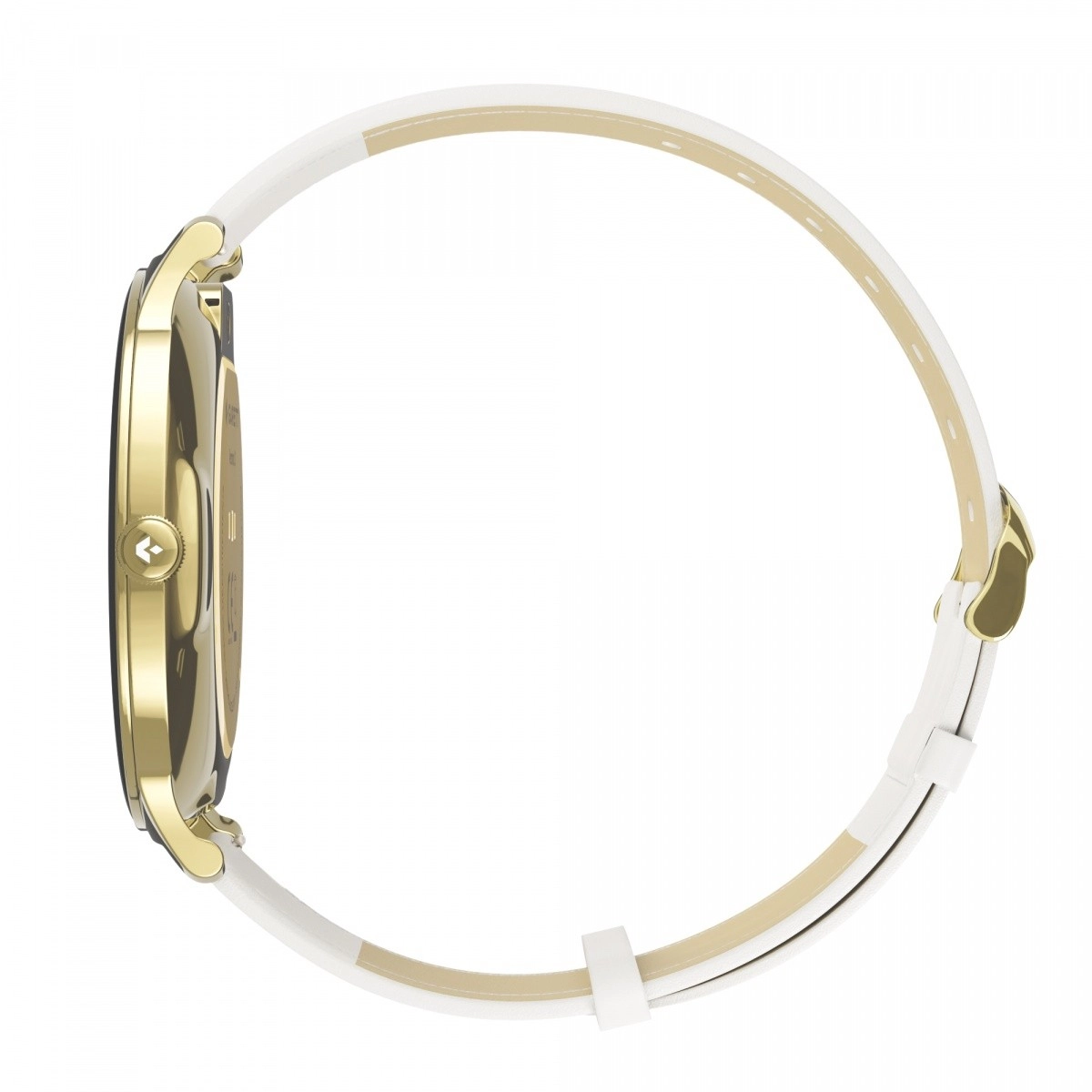 - Guldfarvet stålrem; hvid rem i økolæder