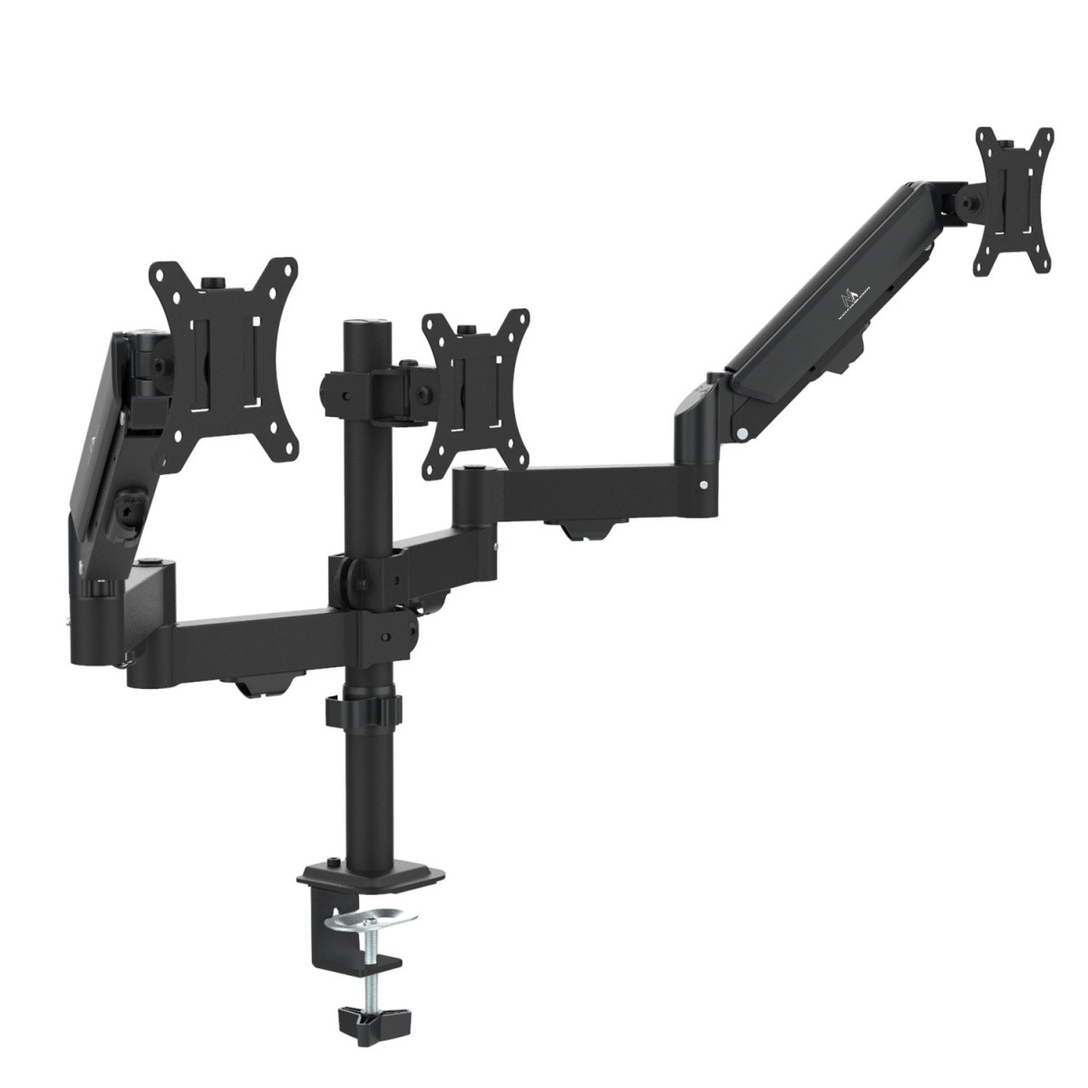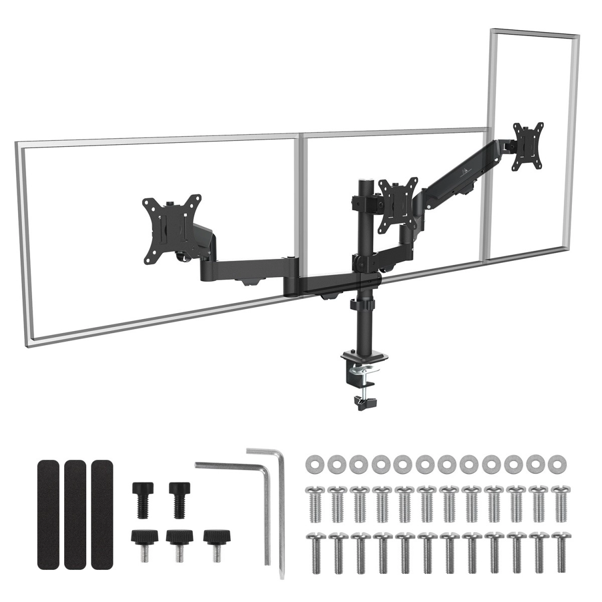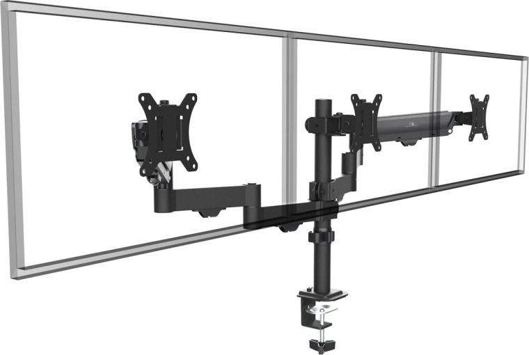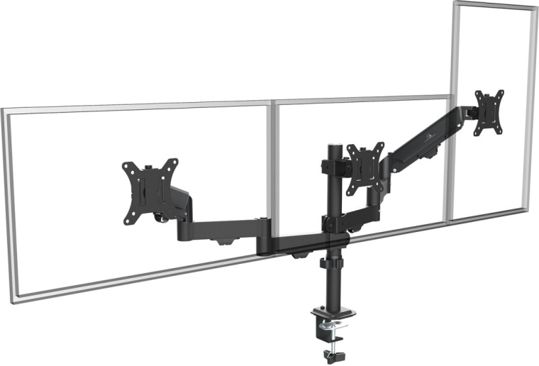 - Professionel 3-skærmsopsætning: to bevægelige arme + en stabil midte for perfekt justering.
