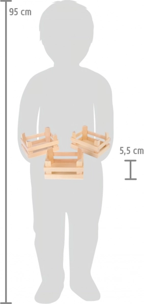 Leder du efter et stilfuldt og praktisk supplement til dine børns lege? Sættet med tre trækasser fra Small Foot er det perfekte valg! Disse kasser kan bruges til købmandslege, men også til at holde orden i børneværelset eller udenfor i haven. Målene 10x8x5,5 cm giver nok plads til alle småting.