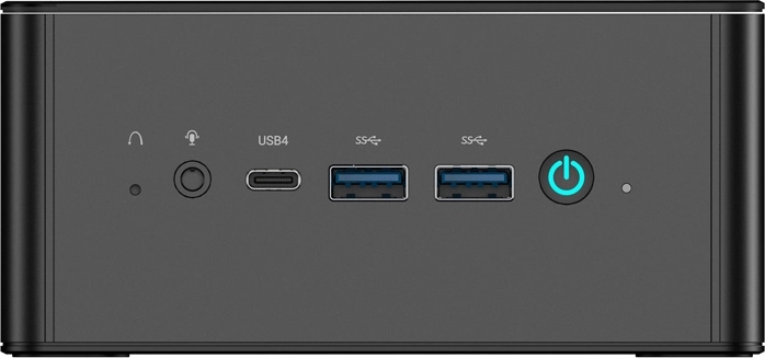 - 2× RJ45 (2.5G Ethernet); 4× USB 3.2 Gen2 Type‑A; 2× USB4 (Alt/PD); 1× HDMI 2.1; 1× DisplayPort 1.4; 1× Oculink; 1× 3,5 mm lydjack; 1× DMIC