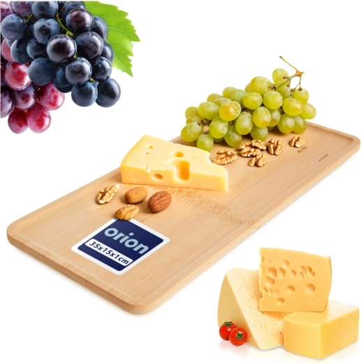Vælg et tidløst udseende og funktionalitet. Bambus serveringsfad Orion imponerer med en glat overflade, afrundede kanter og en praktisk forhøjet kant, som hjælper med at holde safter eller krummer på brættet. Velegnet til daglig brug, fester og catering – fra kaffe med desserter til oste- og frugtserveringer.