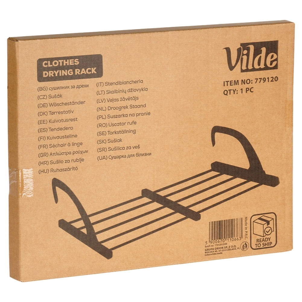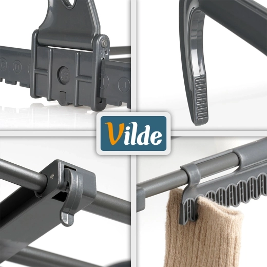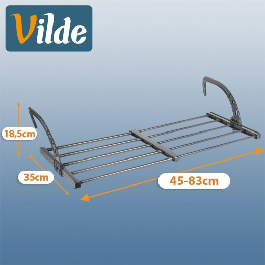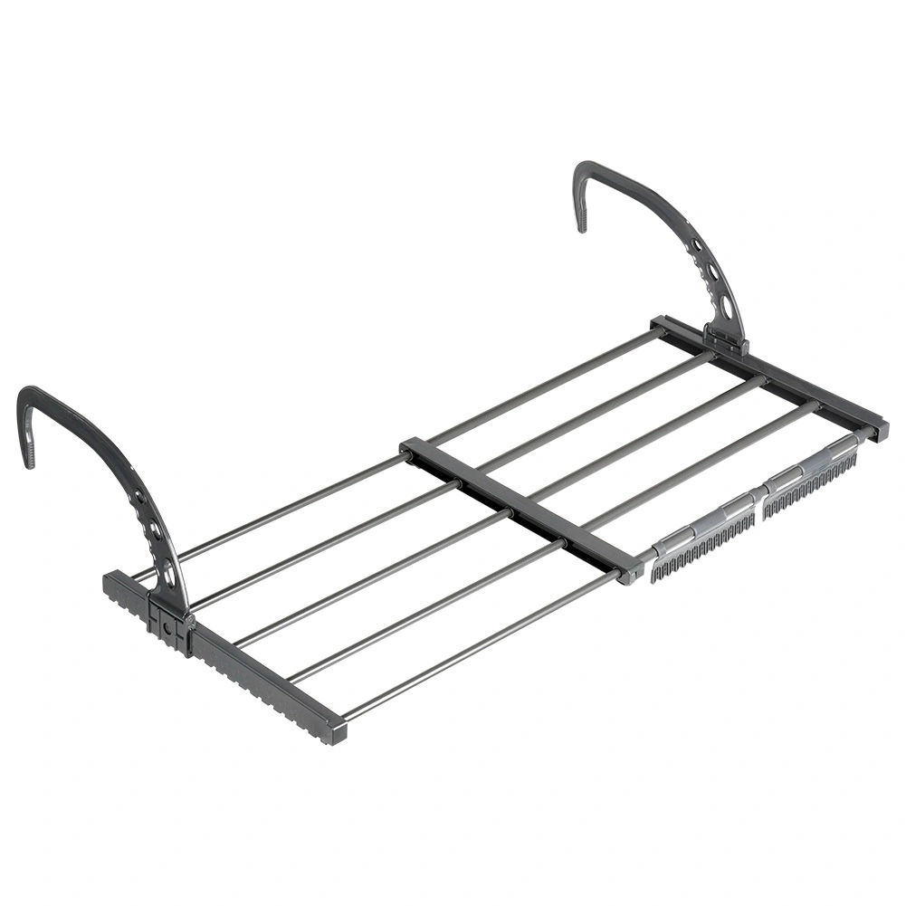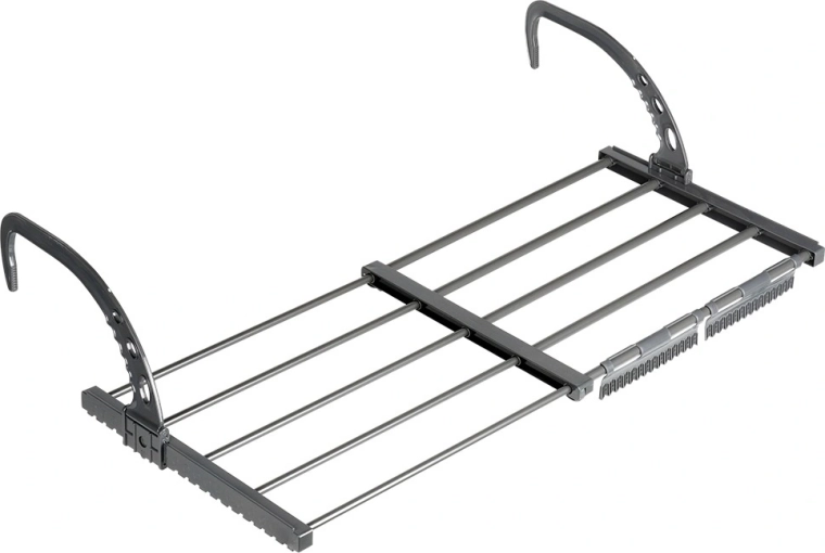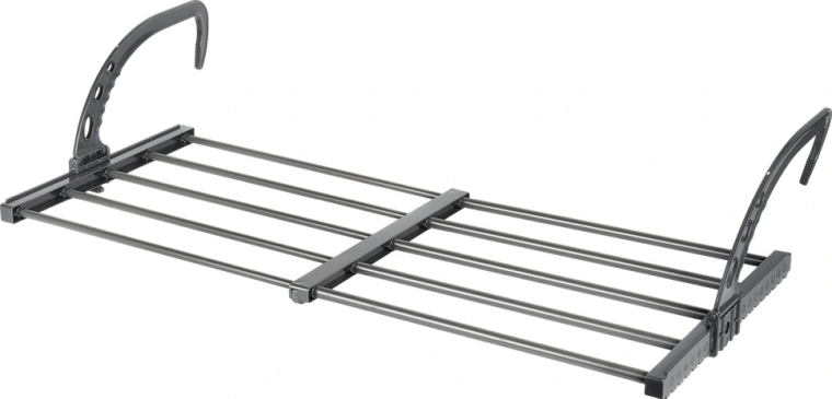 Takket være de sammenklappelige, højdejusterbare kroge kan det nemt hænges på en radiator med en dybde på op til 13 cm samt på altan- eller terrasserækværk. To medfølgende holdere gør det lettere at tørre småt tøj og sokker. Når det er foldet sammen, fylder det minimalt, hvilket gør det ideelt til rejser.