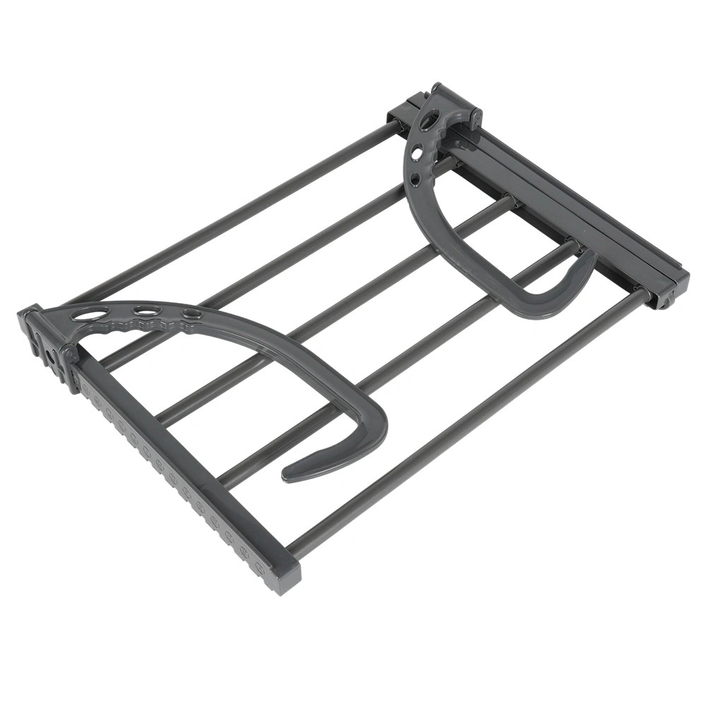 Holdbare metalstænger og kvalitetsplastdele i grå farve sikrer stabilitet og lang levetid ved daglig brug.