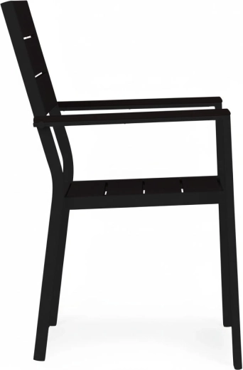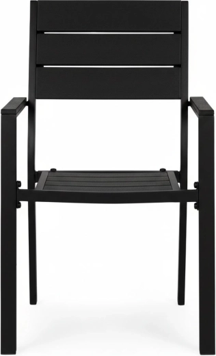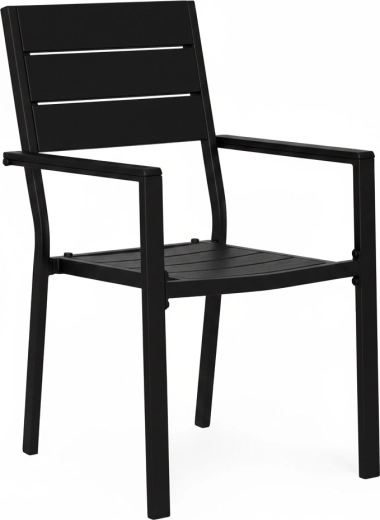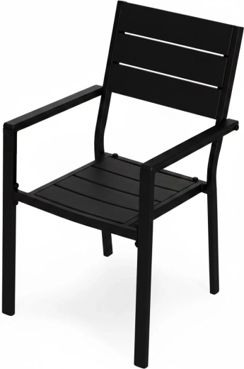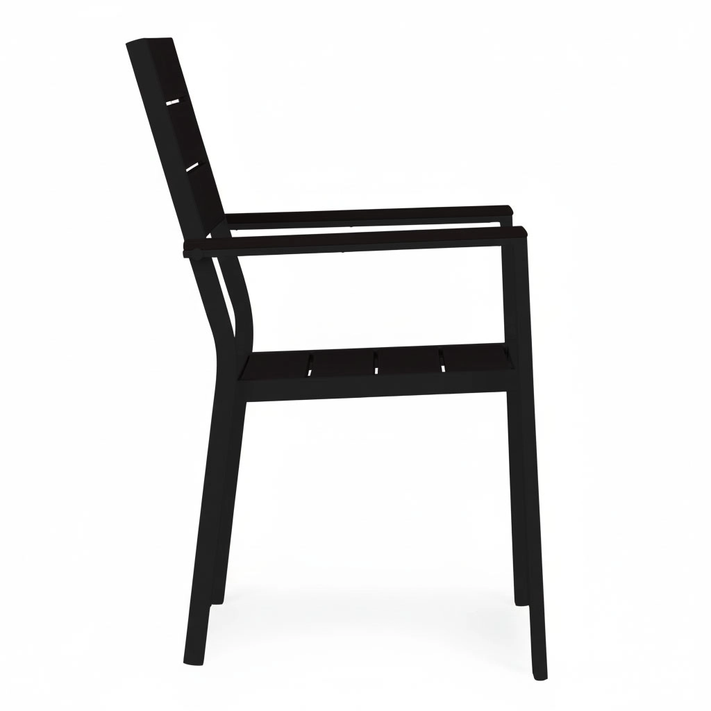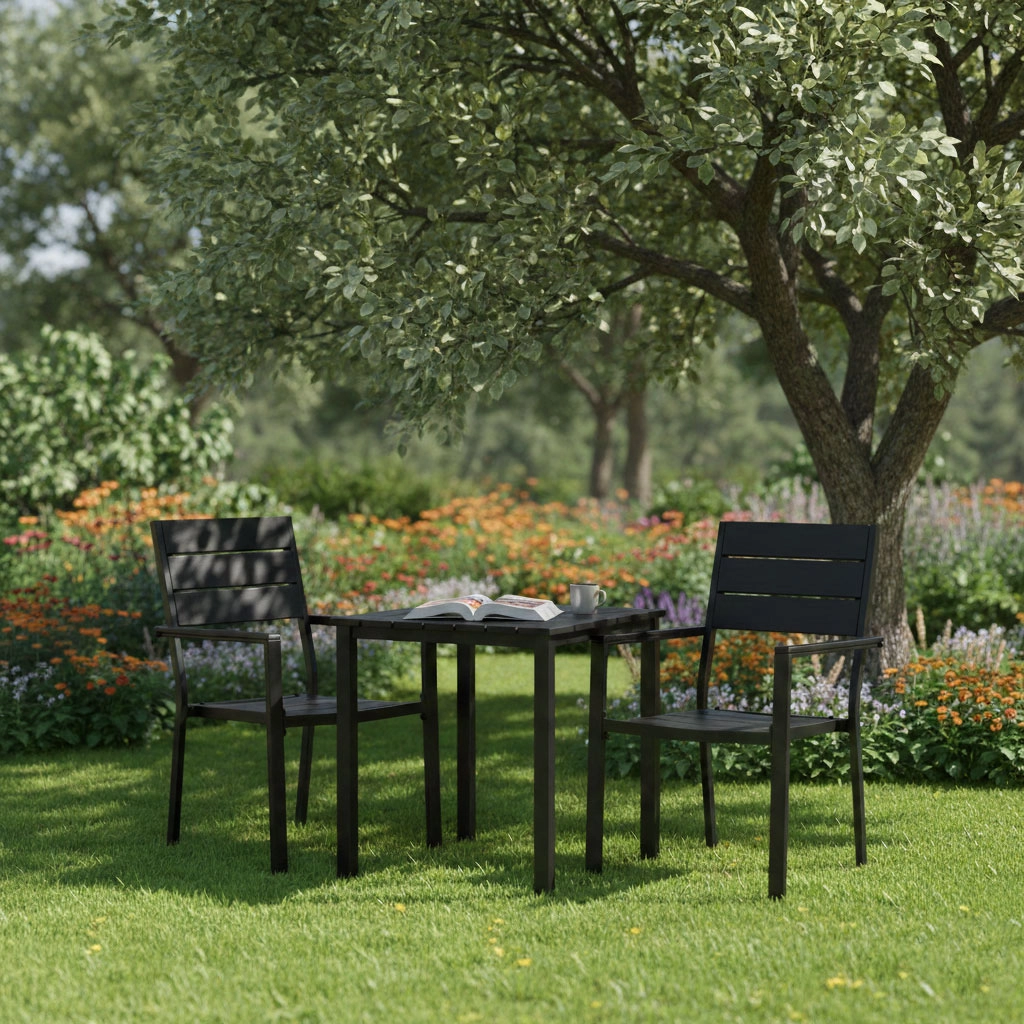 Rammen i pulverlakeret stål sikrer høj styrke og korrosionsbestandighed, mens sæde og ryglæn i holdbart HDPE er udformet med en træinspireret tekstur og nem vedligeholdelse. Konstruktionen er stabil og designet til skiftende udendørsforhold.