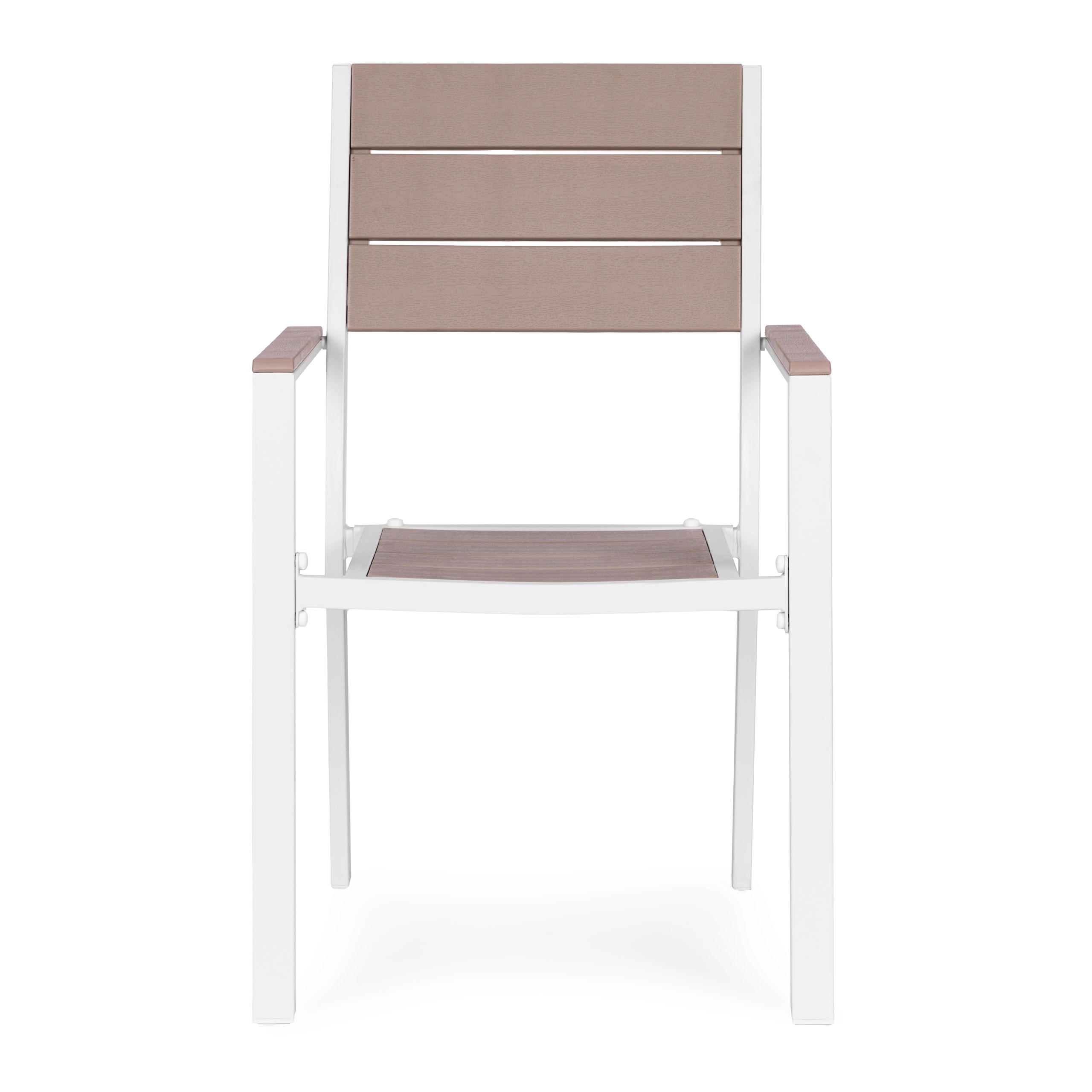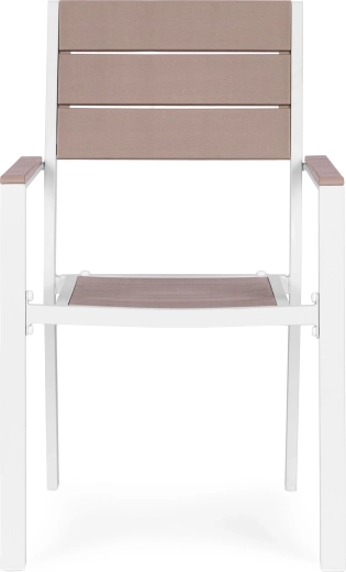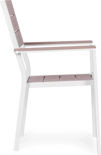 De stilfulde og praktiske MultiGarden-stole fuldender ethvert udendørsområde. Det universelle design i hvid med træstruktur på sæde og ryg passer nemt til både moderne og klassiske møbler. Perfekte til morgenkaffe, eftermiddagsafslapning og hyggelige aftener med venner.