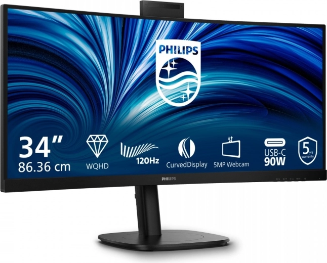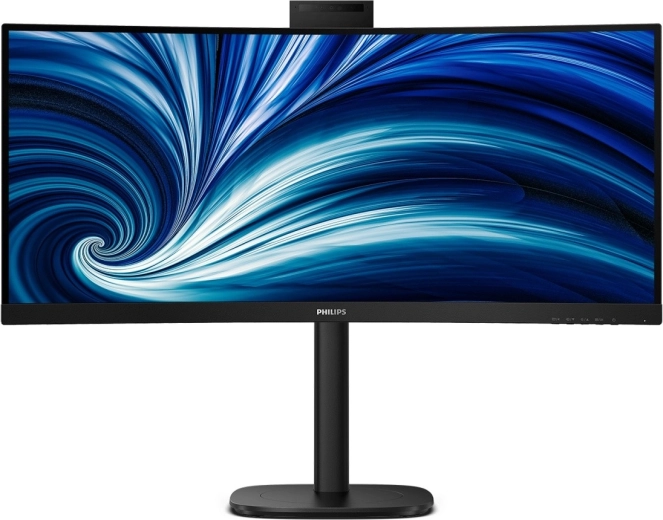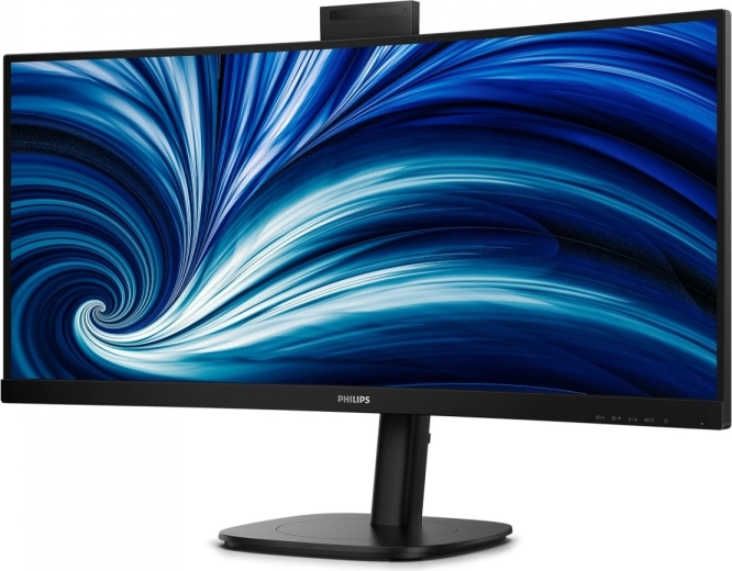 Nyd et medrivende billede på en ultrabred skærm i 21:9-format. PHILIPS 34B2U3600CH tilbyder et buet VA-panel for dybe sorte nuancer, USB‑C med strømforsyning til nem tilslutning af din bærbare, indbygget KVM‑switch, RJ45 for stabilt netværk og et pop‑up webkamera til videoopkald – alt i et ergonomisk HAS‑design.
