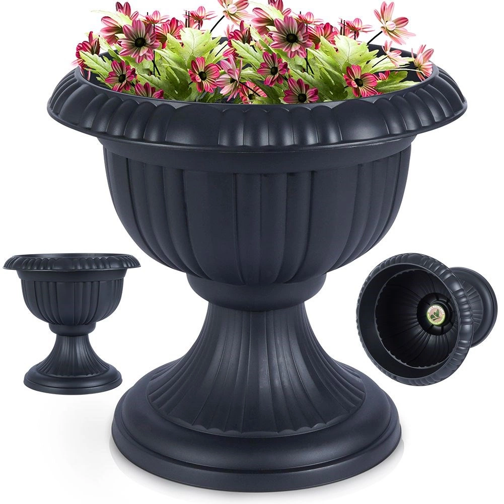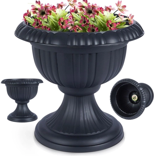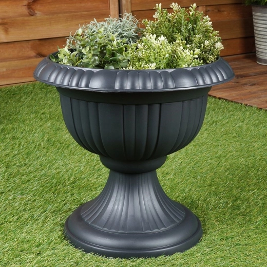 Den stilfulde blomsterkrukke i form af en antik kalk løfter straks udtrykket i enhver udendørs indretning. Den antracitgrå tone er let at kombinere med forskellige typer beplantning og tilbehør. Takket være kvalitetsplast er krukken let at flytte, men samtidig stærk og stabil.