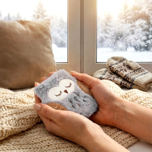 Hold hænderne varme med en stilfuld ugleformet varmepude. Det bløde plysbetræk er rart at røre ved, og indeni er der en gelpose med aktiveringsplade, der varmer øjeblikkeligt, når den knækkes. Når den er kølet af, kan du nemt reaktivere den ved at koge den i vand, hvilket sparer både penge og miljø.