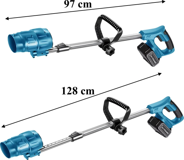 Juster værktøjets længde for komfortabel blæsning, og fold det nemt sammen efter brug. Et hjælpegreb øger grebssikkerheden og manøvredygtigheden.