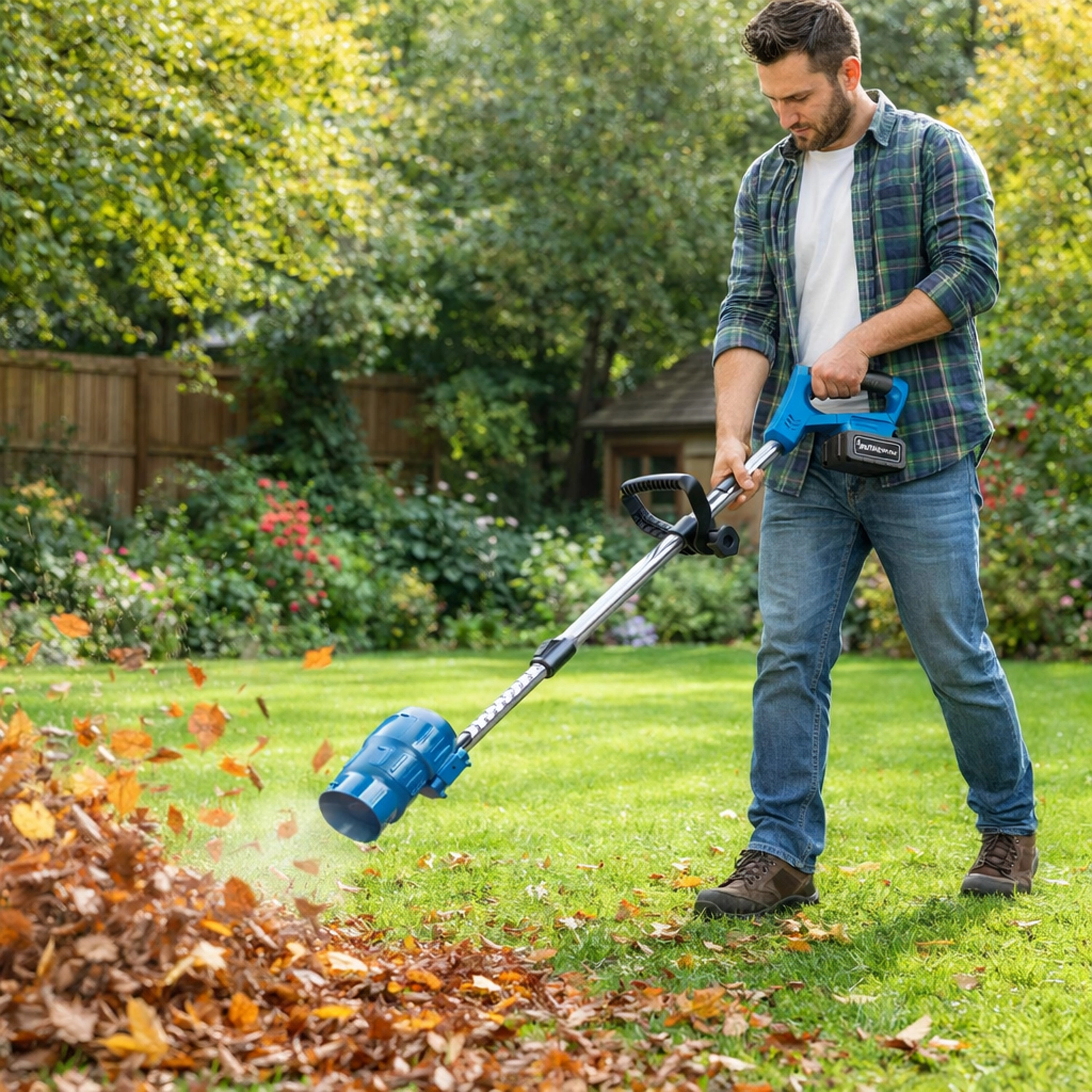 En kraftig luftstrøm blæser effektivt løv væk fra græsplæner, stier og terrasser. Ideel til et velholdt udseende i haven på få minutter.