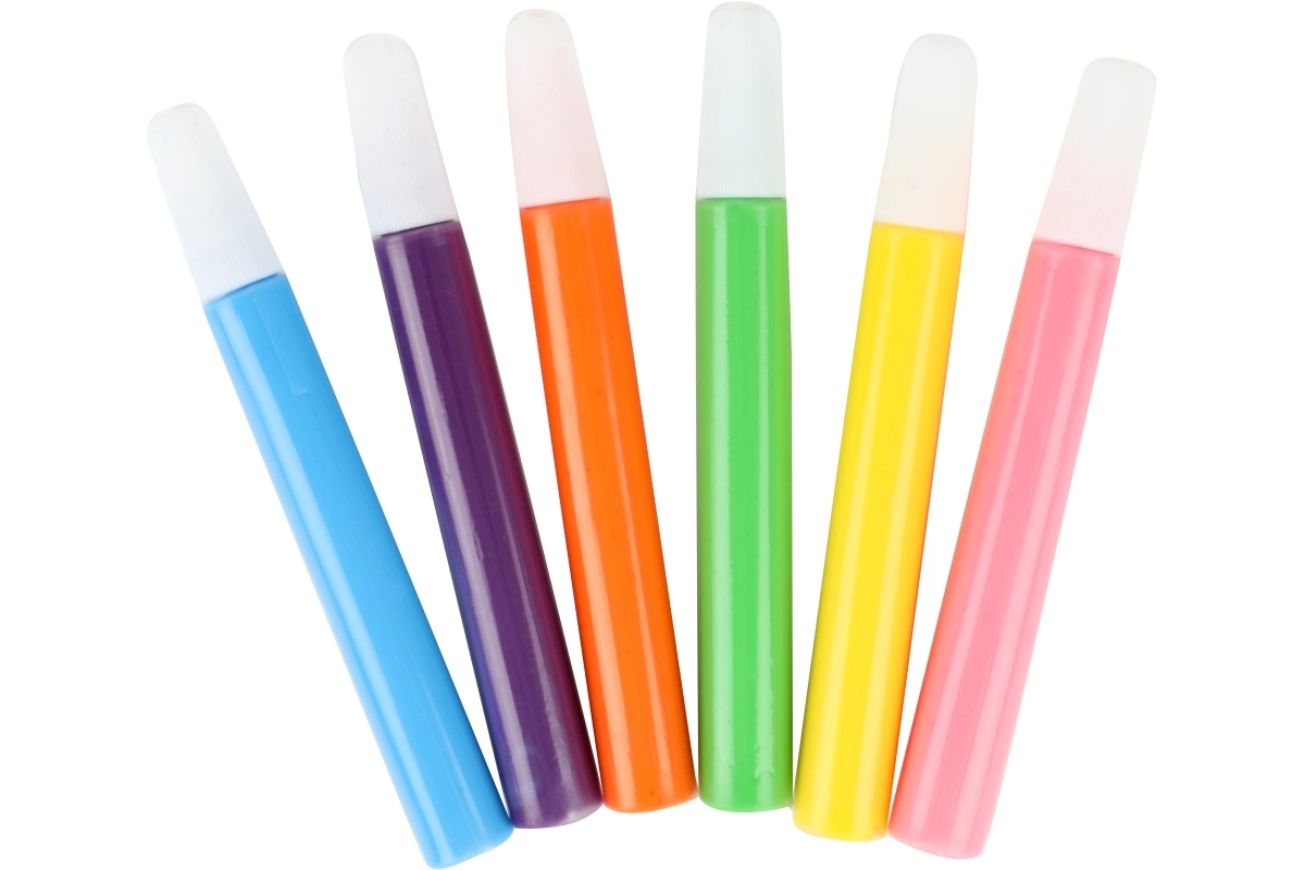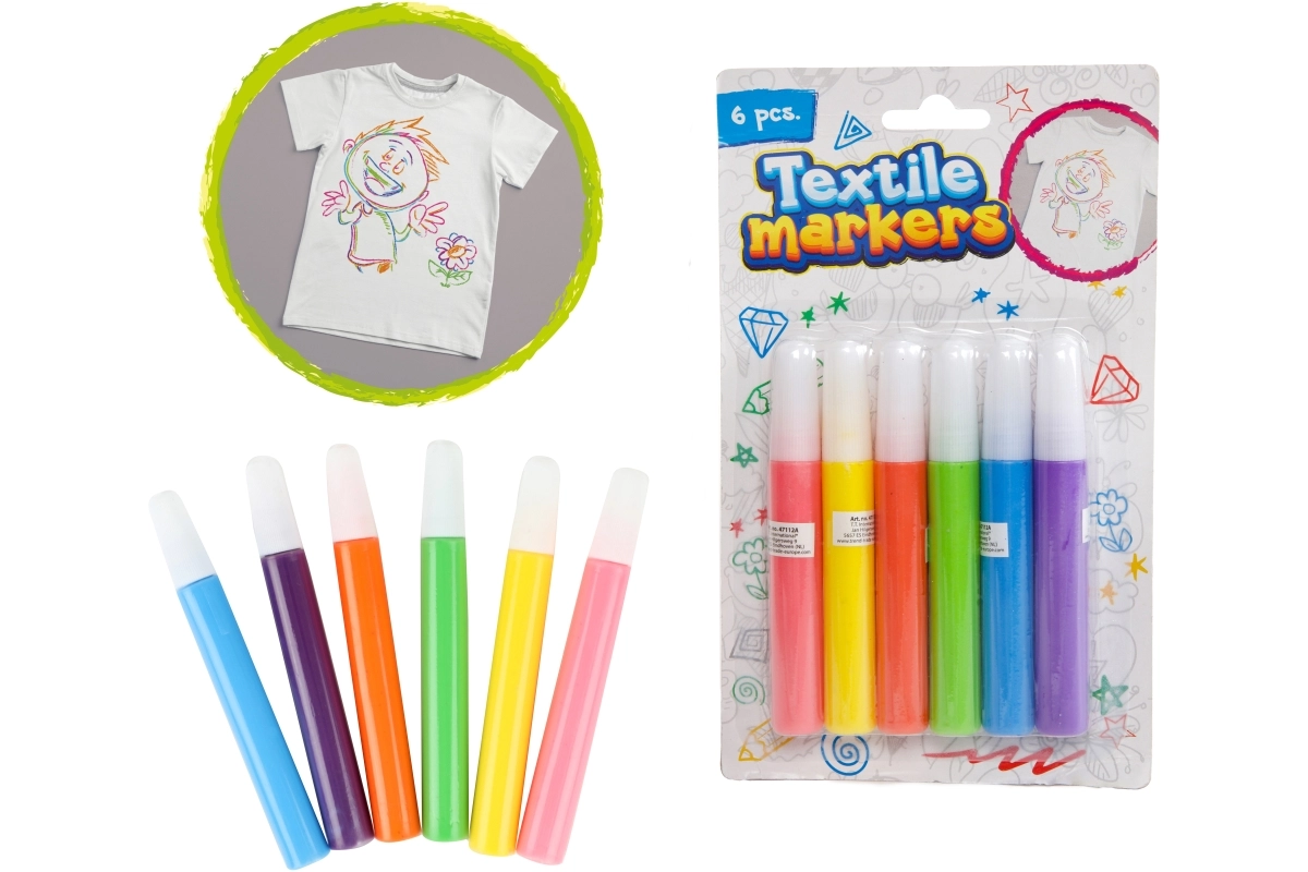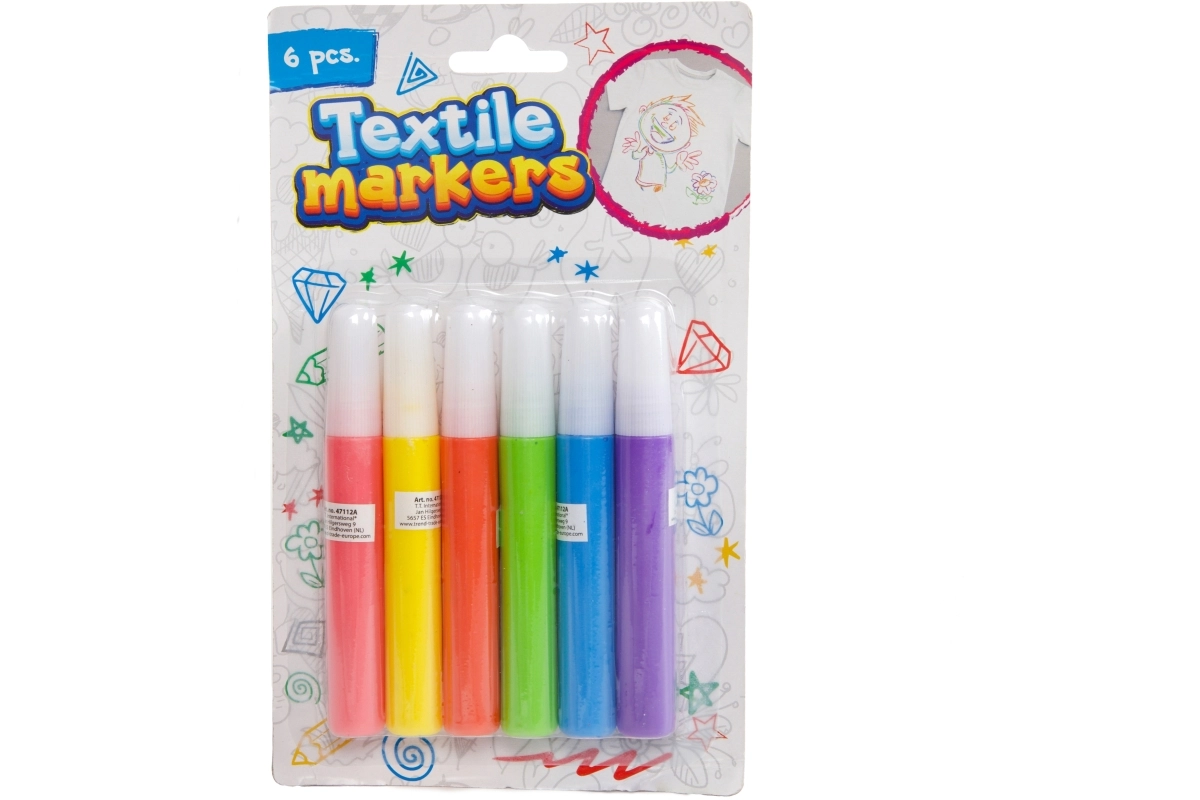 Farvelæg, konturér og pynt tekstiler med en alsidig palet af 6 nuancer – ideel til T‑shirts, tasker og børneprojekter.