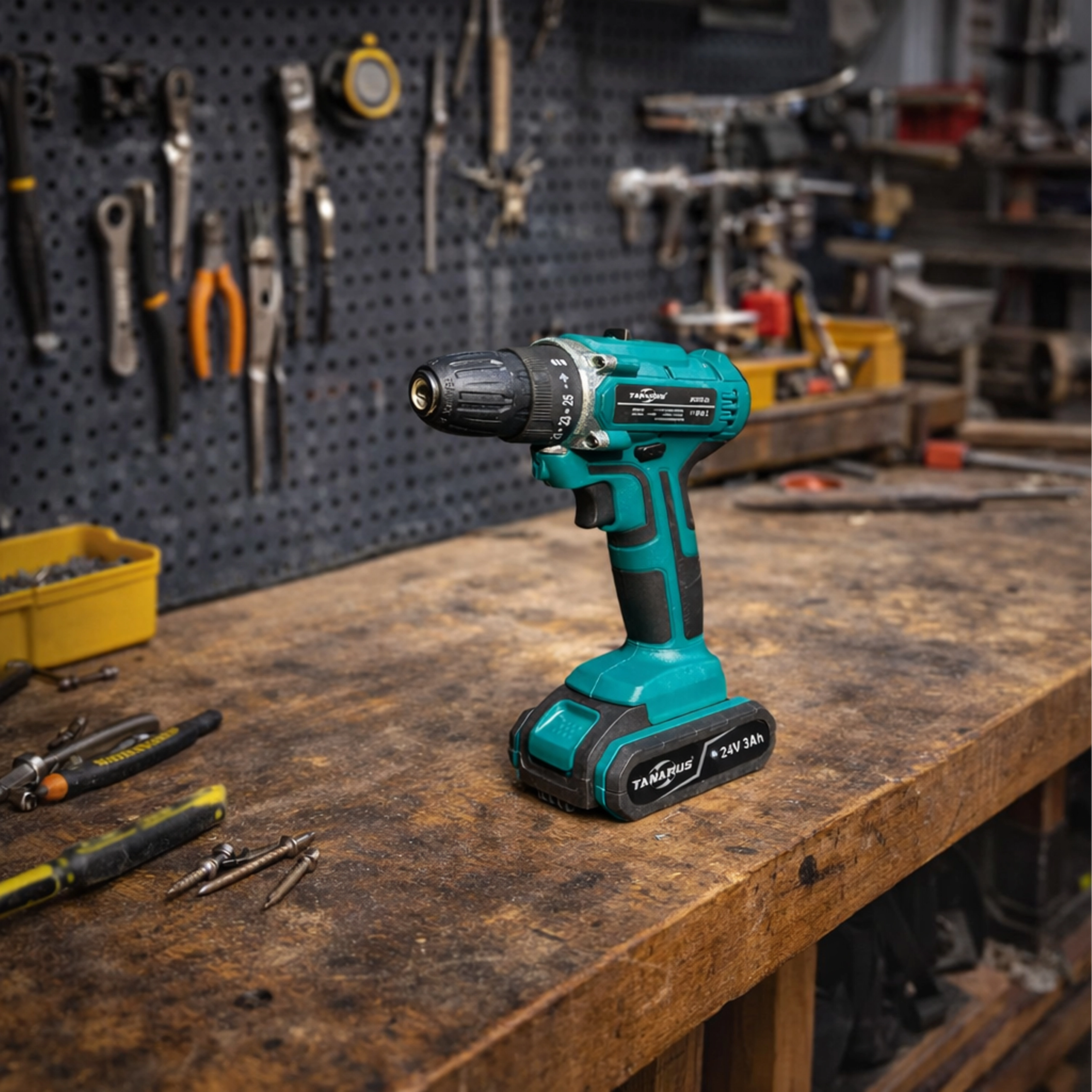 24 V-motoren giver rigelig kraft til hurtig boring i træ, metal og plast samt effektiv skruning uden besvær.