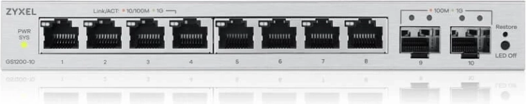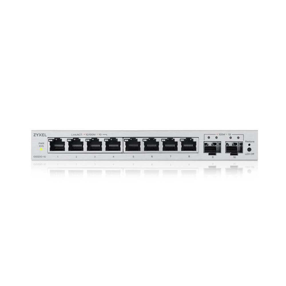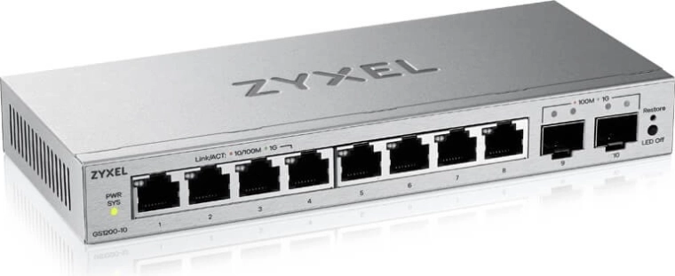 Zyxel GS1200-10 v3 er et smart valg til kontorer, små virksomheder og hjemmenetværk, hvor der er brug for en pålidelig og let administrerbar gigabitswitch. Den tilbyder otte gigabitporte til slutenheder og to SFP-uplinks for fleksibel og ren tilslutning til distributions- eller backbone-laget.