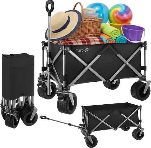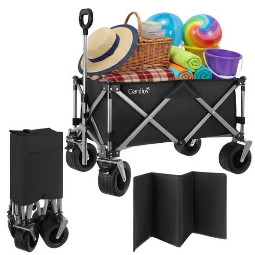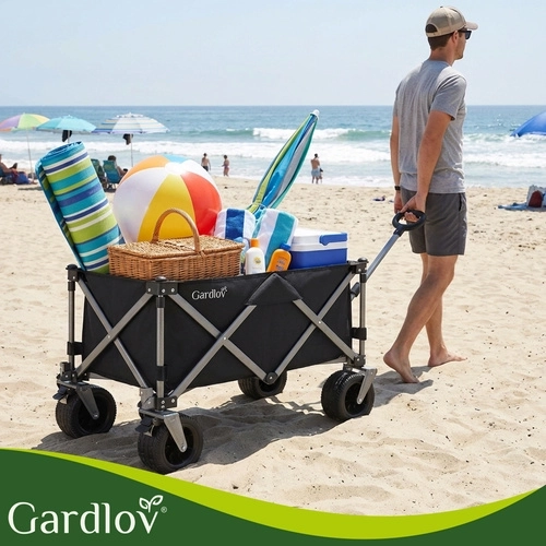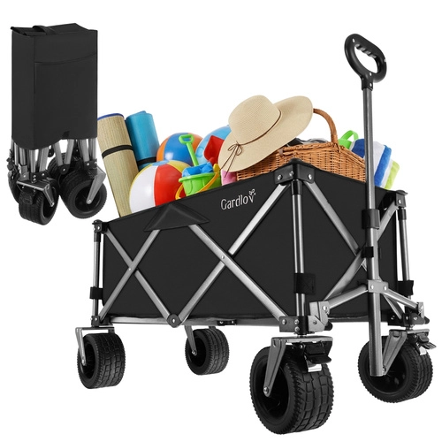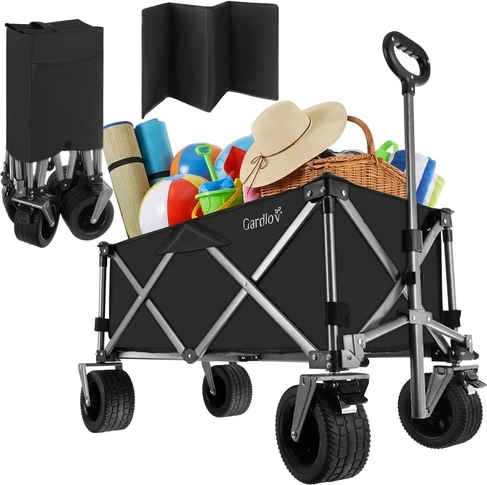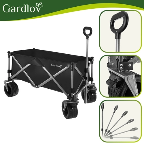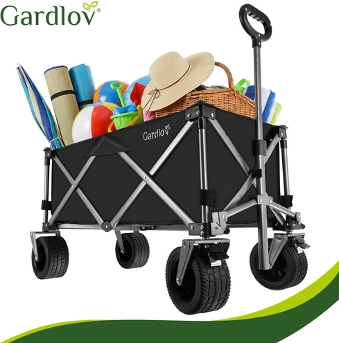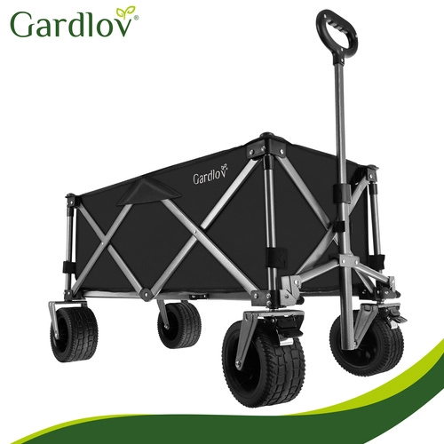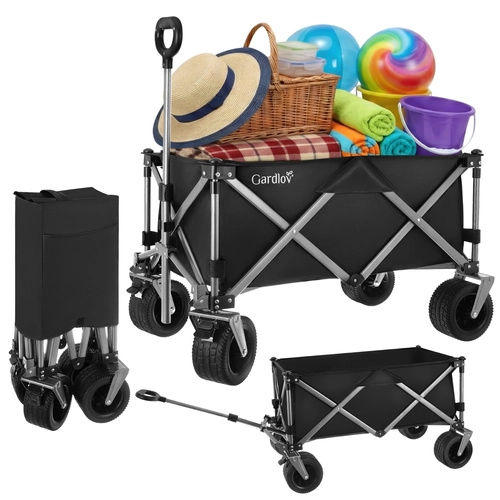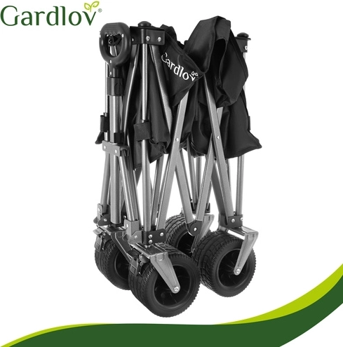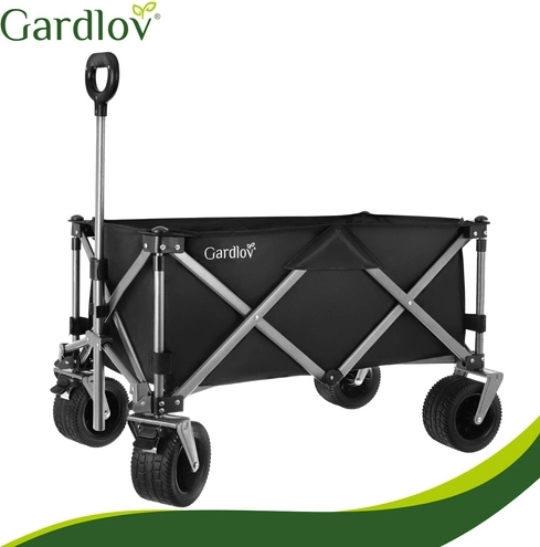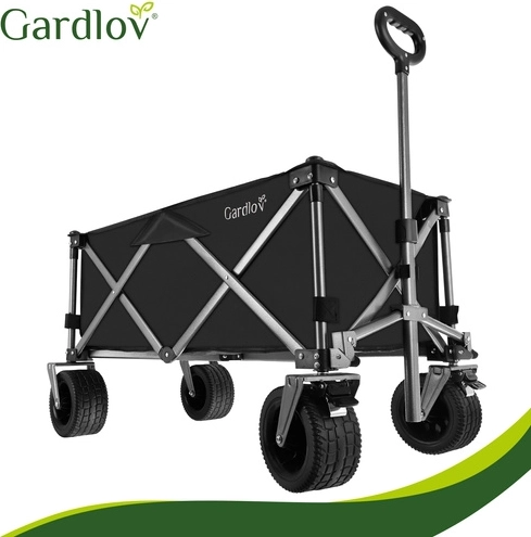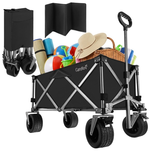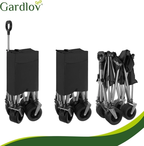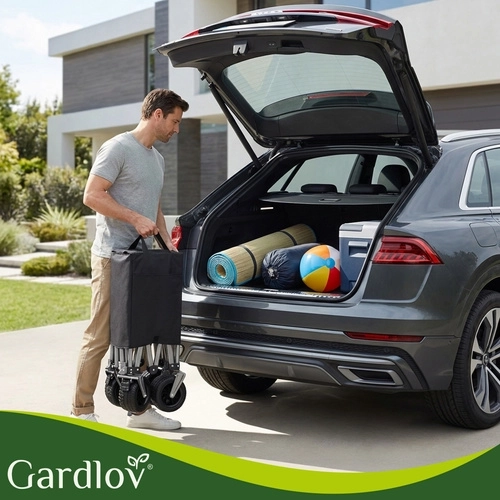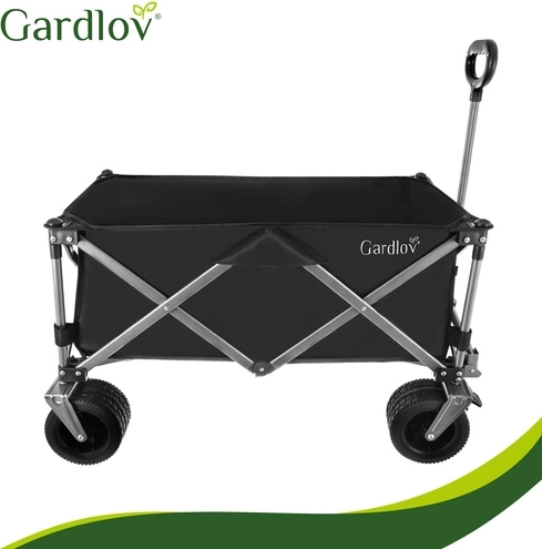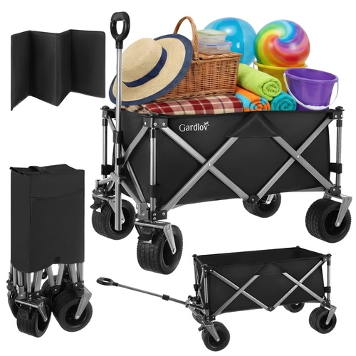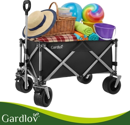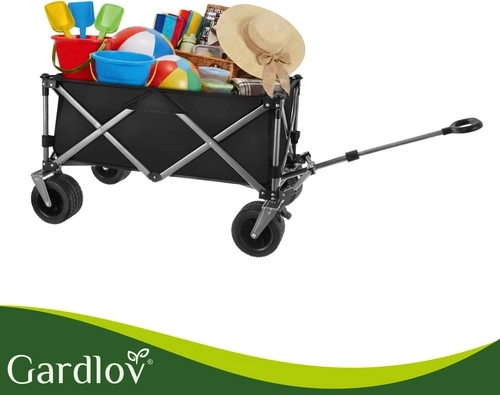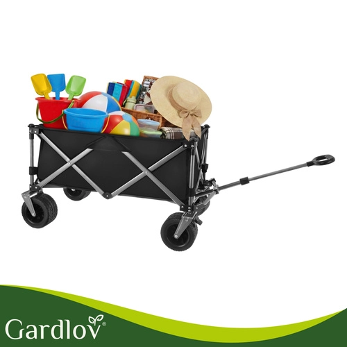 Den alsidige sammenklappelige vogn GARDLOV er den ideelle hjælper til have, strand, camping og sommerhus. Den tilbyder en ekstraordinær bæreevne på 200 kg, et stort volumen på 150 l og slidstærkt, vandafvisende Oxford 600D-stof med PVC-belægning. Takket være brede terrænhjul, 360° drejelige forhjul og teleskophåndtag transporterer den let både tunge og uhåndterlige læs, og efter brug klappes den hurtigt sammen til kompakte mål.