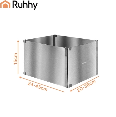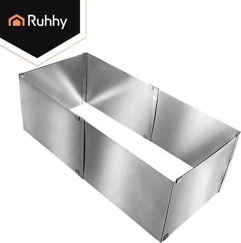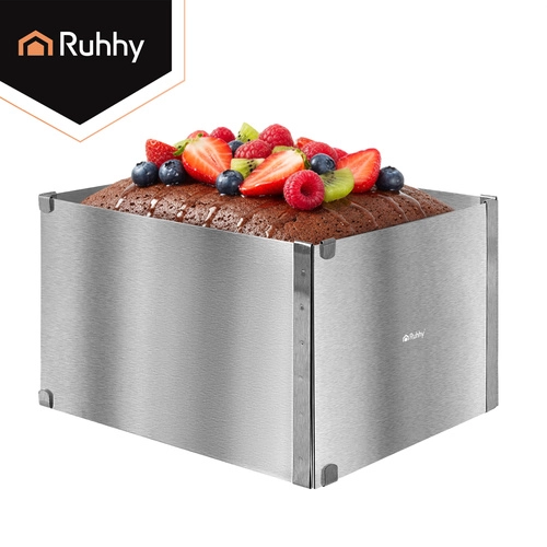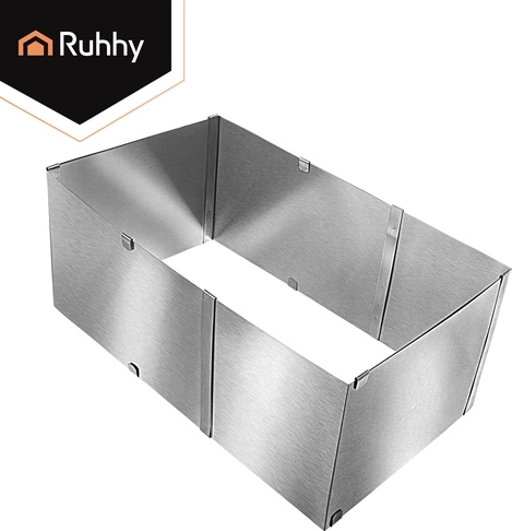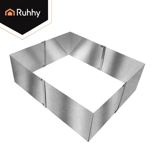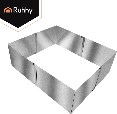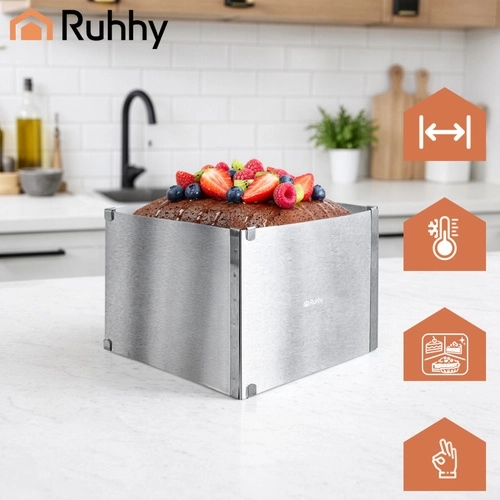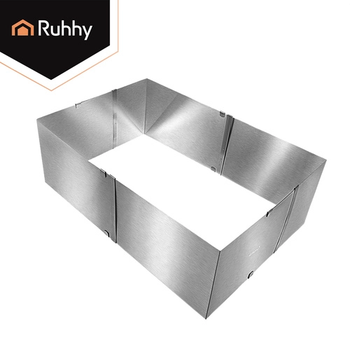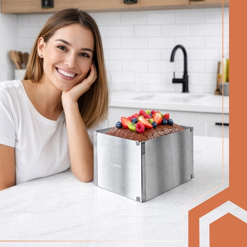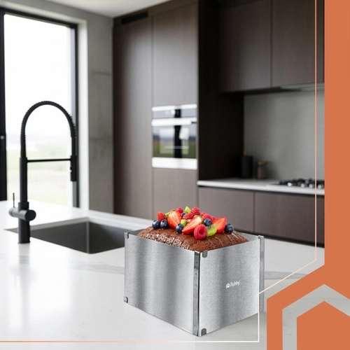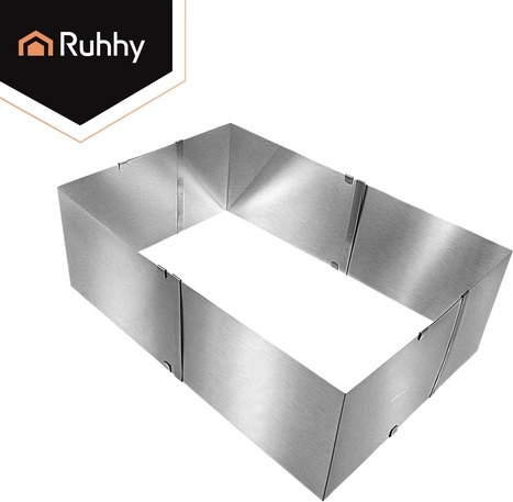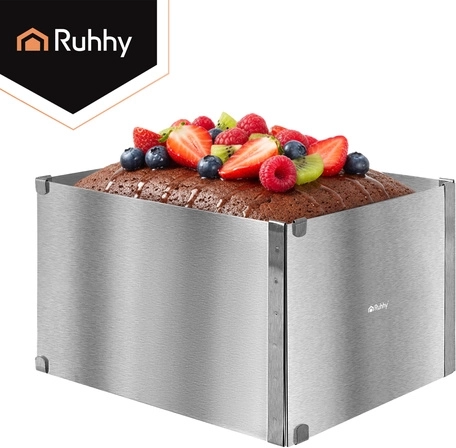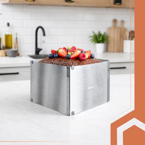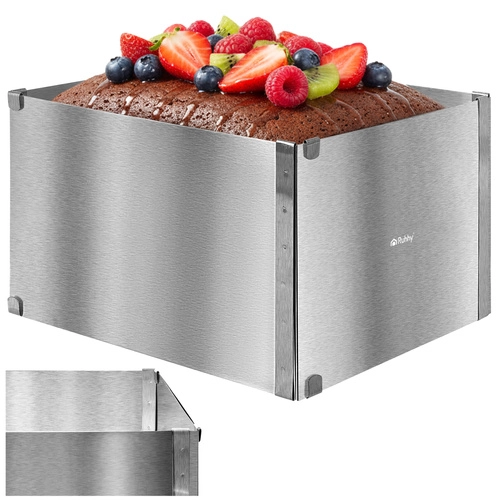 Praktisk justerbar RUHHY-form i rustfrit stål til både bagning og lagdeling af desserter. Takket være trinløs regulering af mål 20–38 × 24–45 cm og en højde på 15 cm kan du nemt tilpasse størrelsen til enhver opskrift. Stærke klemmer holder indstillingen, kvalitetsrustfrit stål er holdbart og egnet til sikker kontakt med fødevarer, og nem vedligeholdelse inklusive opvask i maskine sparer tid.