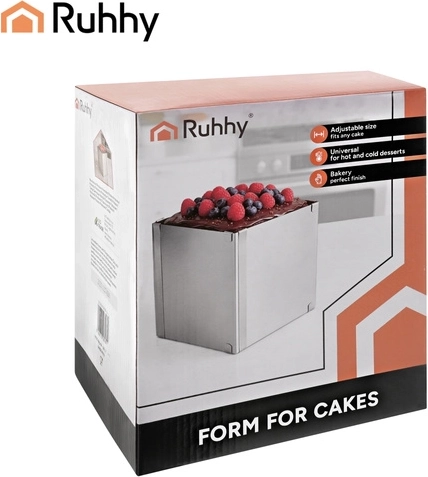 Den justerbare rektangulære RUHHY-ramme er en alsidig hjælper til både hjemme- og professionelle konditorer. Den lader dig forme bunde, kager, lagkager eller ubagte og lagdelte desserter med perfekt lige kanter. Den robuste rustfri stålkonstruktion modstår korrosion og deformation og er nem at rengøre.