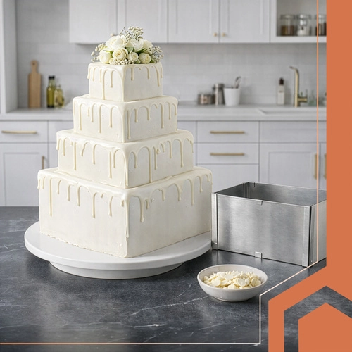 Stabile hjørneklemmer fikserer den valgte størrelse, og de høje, lige vægge former desserter med præcise, glatte kanter.