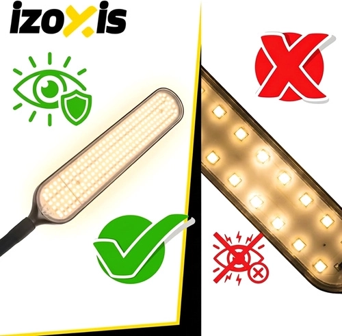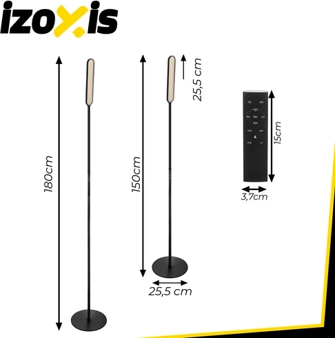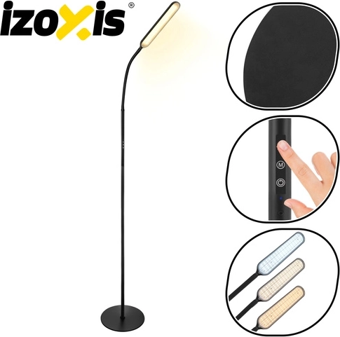 Den elegante stående LED-lampe IZOXIS med en højde på 180 cm byder på moderne design og maksimal betjeningskomfort. Den tilbyder 3 lysfarver (3000K / 4000K / 6000K), 6 lysstyrkeniveauer, fjernbetjening op til 15 m samt berøringspanel. Takket være 216 LED-dioder lyser den jævnt uden blænding, har nattetilstand, 100% lysstyrke med ét klik og en timer 5 min / 1 t til automatisk slukning.