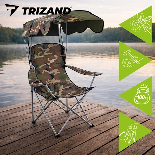 Nyd komfort ved vandet og på camping med den sammenklappelige stol TRIZAND PANAMA. Den tilbyder integreret baldakin med myggenet, stabil konstruktion op til 100 kg, bredt sæde og høj ryg til lange perioder uden træthed. Slidstærkt Oxford 600D-stof, flade fødder mod nedsynkning og praktiske armlæn sikrer komfort i naturen. Nem at folde sammen og bære i taske – ideel til lystfiskeri, camping og haven.