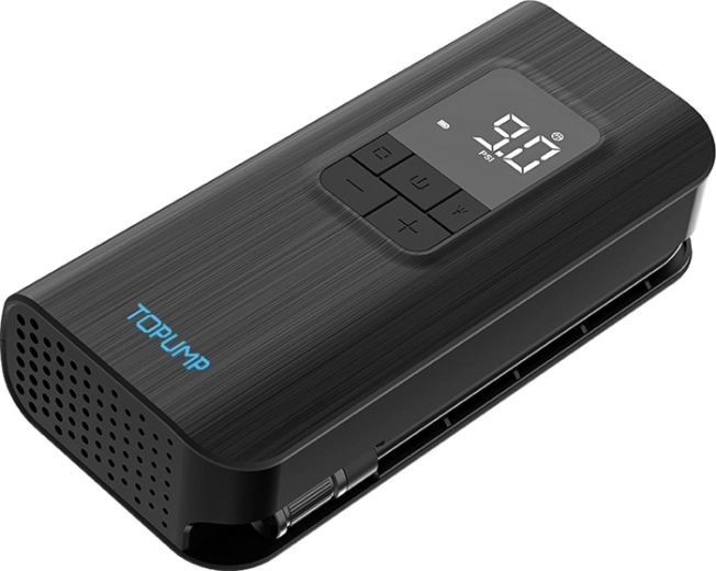 Med det indbyggede batteri på 2 × 2000 mAh klarer den på én opladning op til 4 bildæk, cirka 12 motorcykeldæk, op til 18 cykler eller omtrent 40 bolde. De kompakte mål 160,5 × 73,5 × 38,5 mm og vægten på 410 g gør den let at have med i bil, rygsæk eller værksted. Et integreret LED-lys gør arbejdet lettere efter mørkets frembrud.