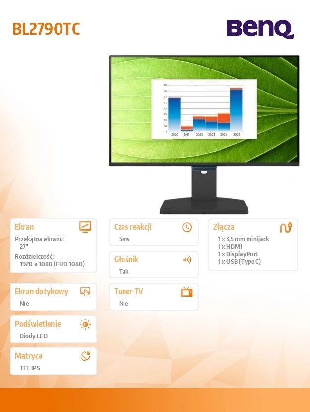 HDMI-forbindelsen gør det nemt at tilslutte til pc, laptop eller spillekonsol. Med optimeret ergonomi og høj billedkvalitet er skærmen velegnet til heldagsbrug både på kontoret og derhjemme.